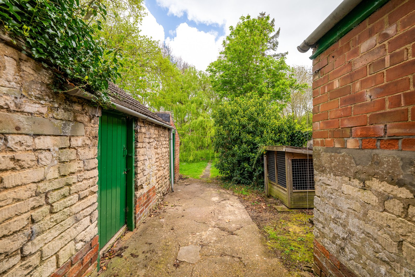 The front elevation offers a large gravel driveway with parking for several vehicle vehicles, small Lord area and mature trees. The real elevation offers a generous lawn area with two brick and slate outbuildings.
