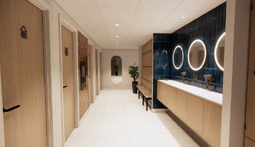 In addition to refurbishment of the floor, the reception and entrance to the building are also being refurbished and new spa-quality shower facilities are being installed.