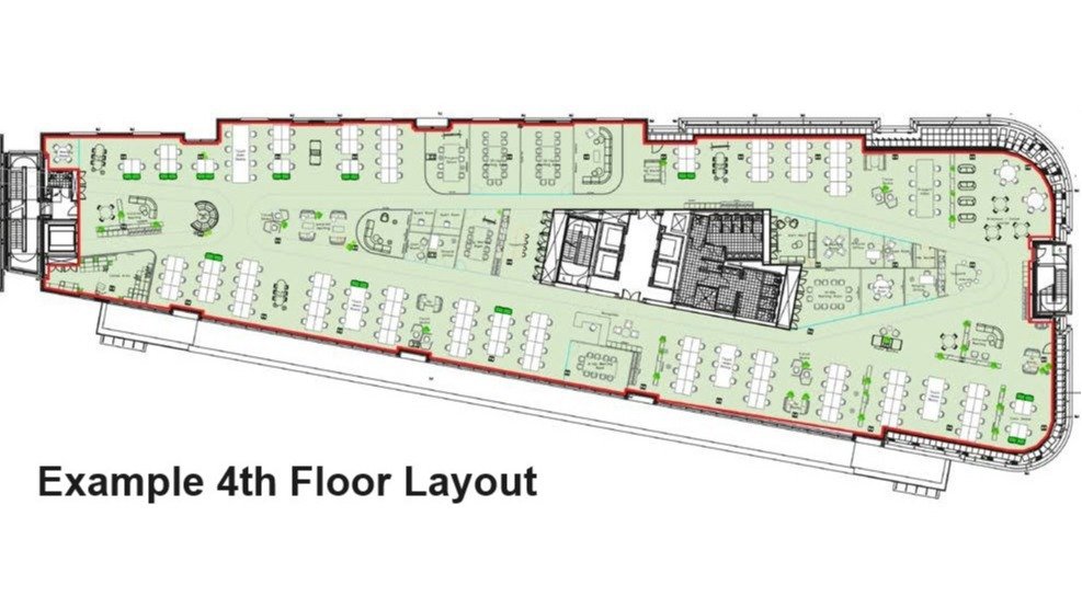 The 4th floor office suite provides a part floor of 15,741 sq ft which is undergoing a comprehensive refurbishment to a high standard. The space has been designed to high specification including new metal suspended ceiling with LED lighting, 4 pipe fan coil air conditioning, full access raised floors and excellent natural light.