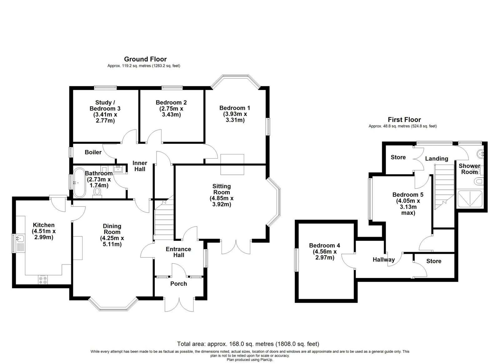 The spacious living accommodation comprises of a porch, entrance hall, sitting room, dining room, kitchen, three bedrooms and bathroom to the ground floor, along with a shower room and two further bedrooms to the first floor.