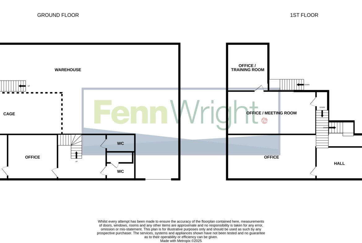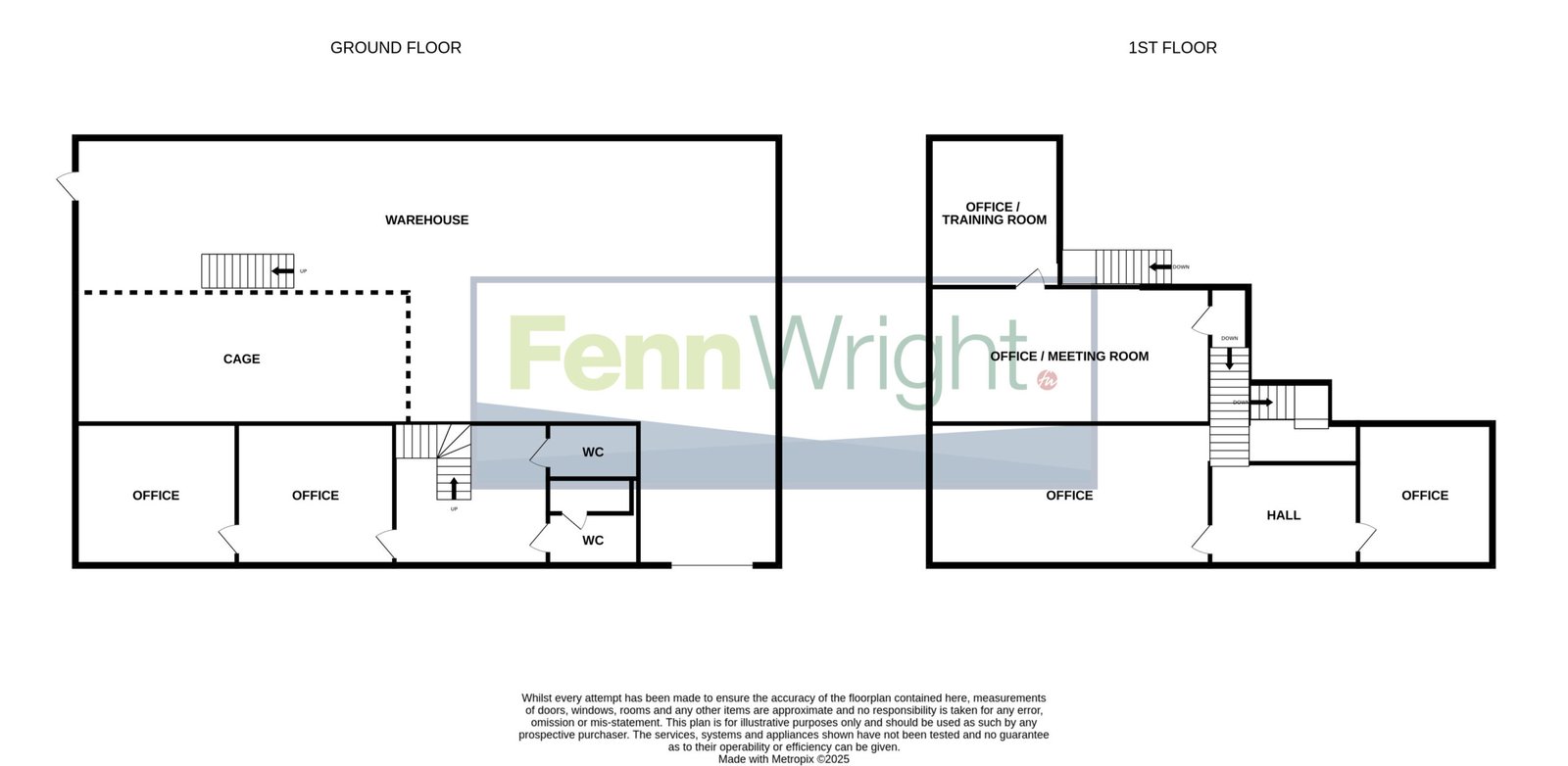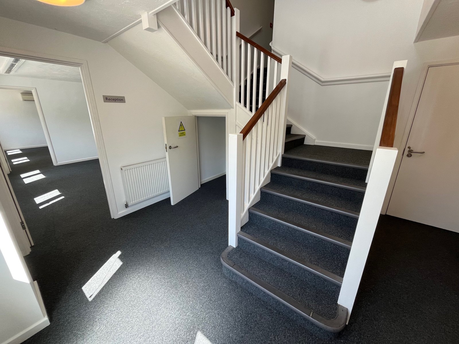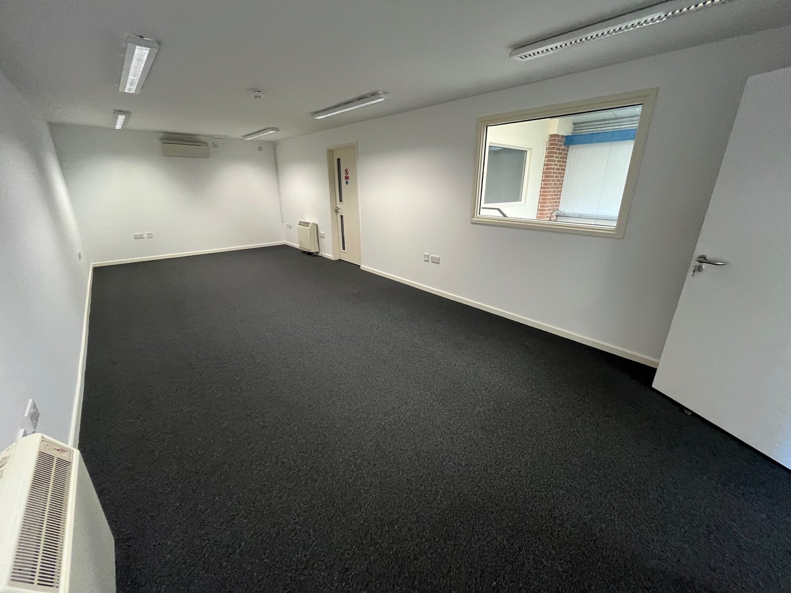 Access is provided via a personnel door leading into an entrance hall, which connects to office and trade counter areas, along with kitchen and WC facilities. A staircase leads to the first-floor offices, which are fitted with fluorescent lighting, gas central heating, and air conditioning (both not tested), as well as electrical sockets and carpet / vinyl flooring.