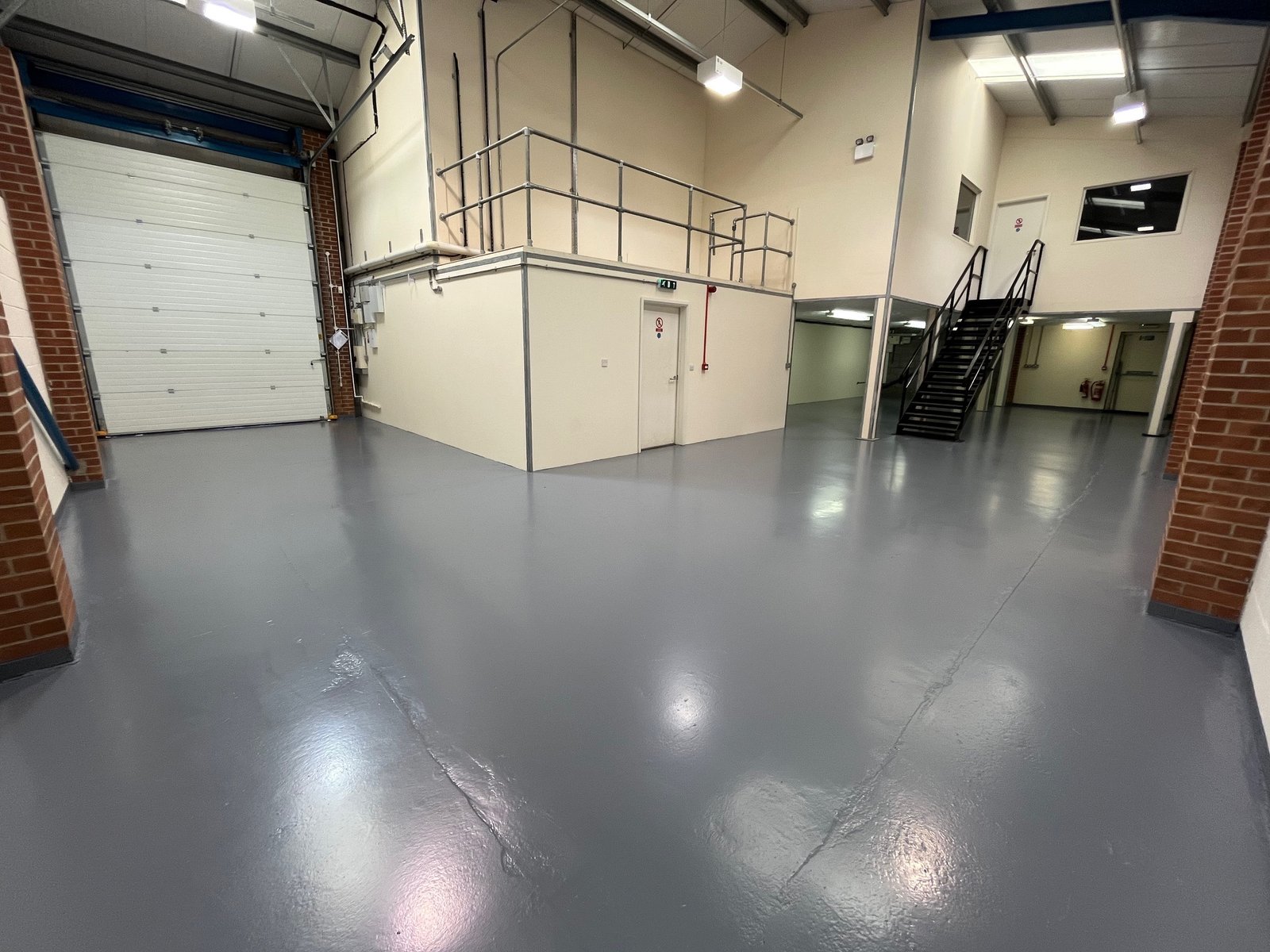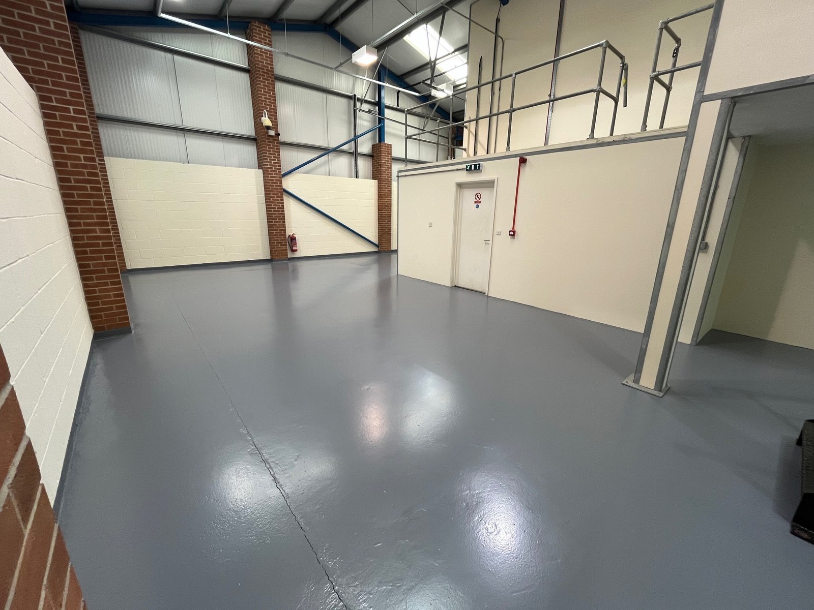 An electric loading door (approx. 3m wide by 4m high) provides separate entry to the warehouse area. The warehouse area benefits from three phase power, fire alarm and fire exit, emergency lighting, and high bay lighting.