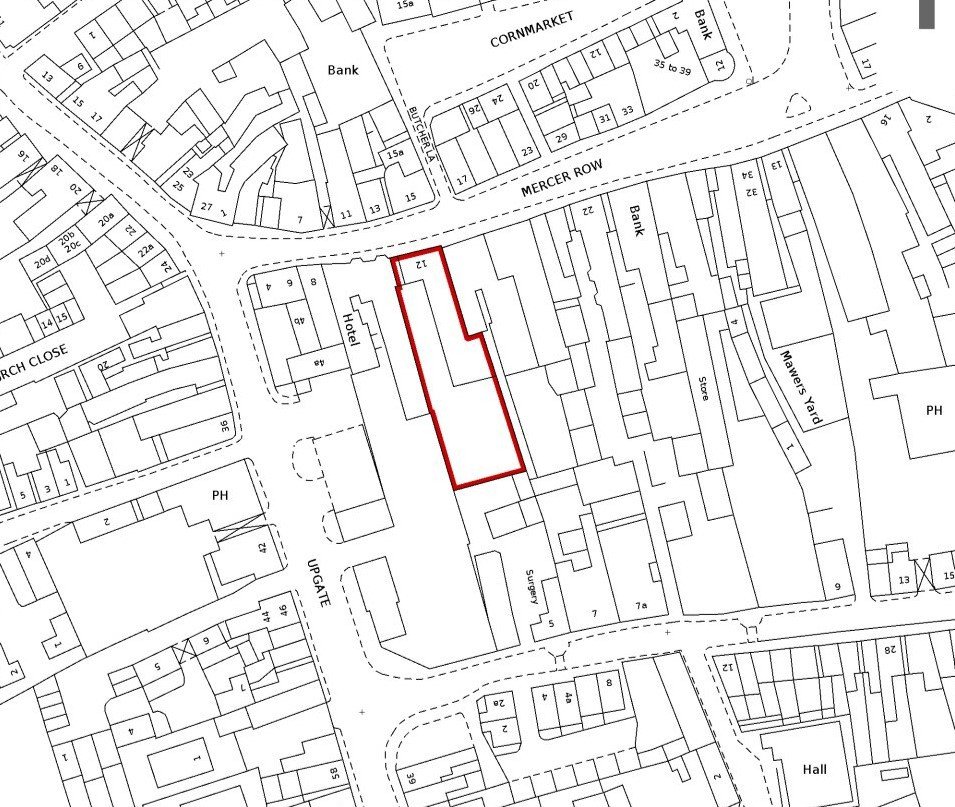 The first floor flat (12A Mercer Row) has its own access from the car park and comprises of 2 bedrooms, kitchen, lounge & bathroom/WC. Externally the property has a car park the rear for approximately 14 cars and an additional store accessed through a roller shutter door. 9 parking spaces are currently let on verbal agreements producing a rental income of £3,240 per annum. The car park has the potential for redevelopment, subject to necessary planning consents and accessed through Kidgate Mews to the South of the property