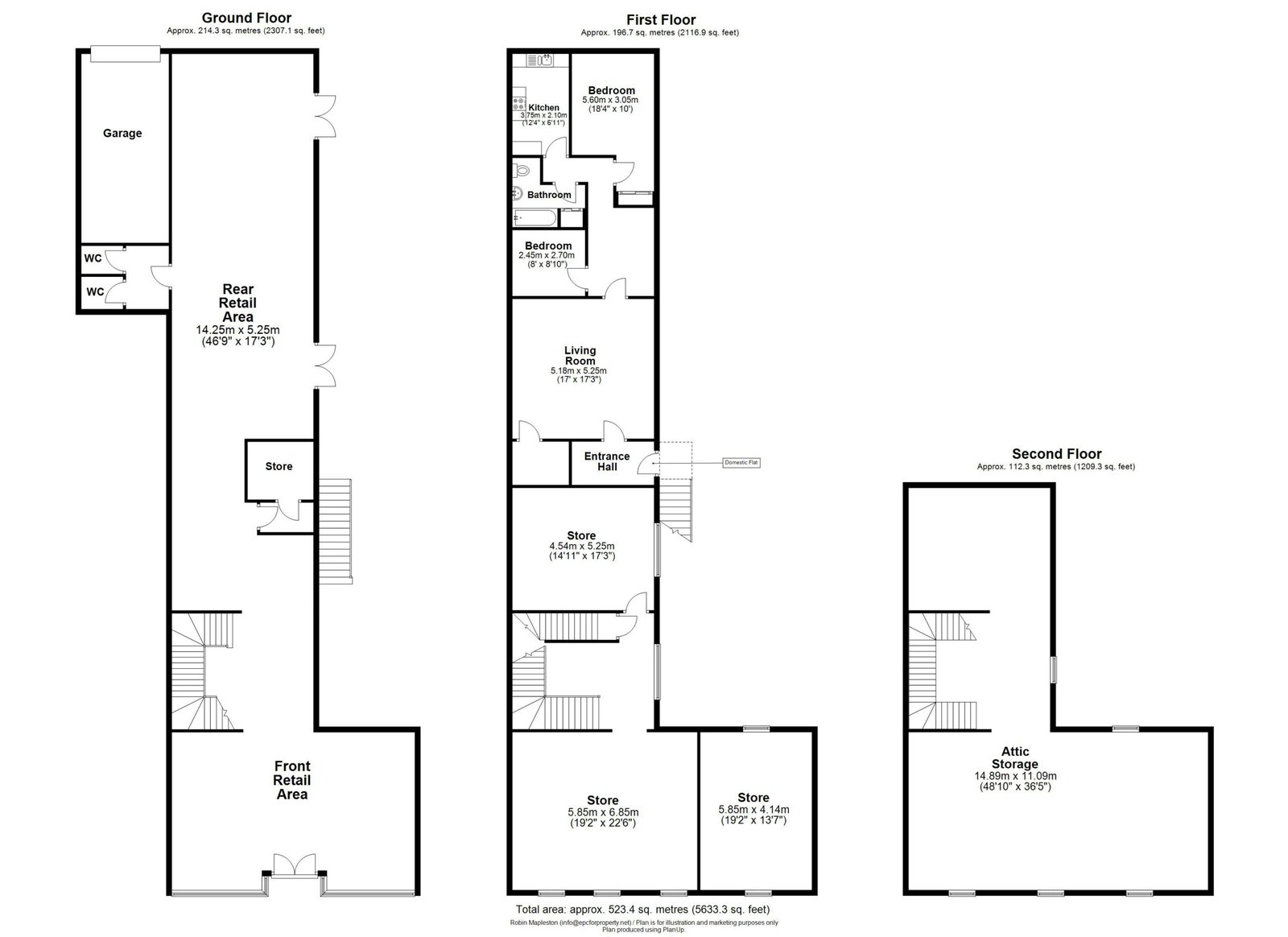 The Retail Unit comprises of a sales area, kitchen, 3 stores and WC’s on the ground floor. The first and second floors comprises of 2 stores and a showroom.