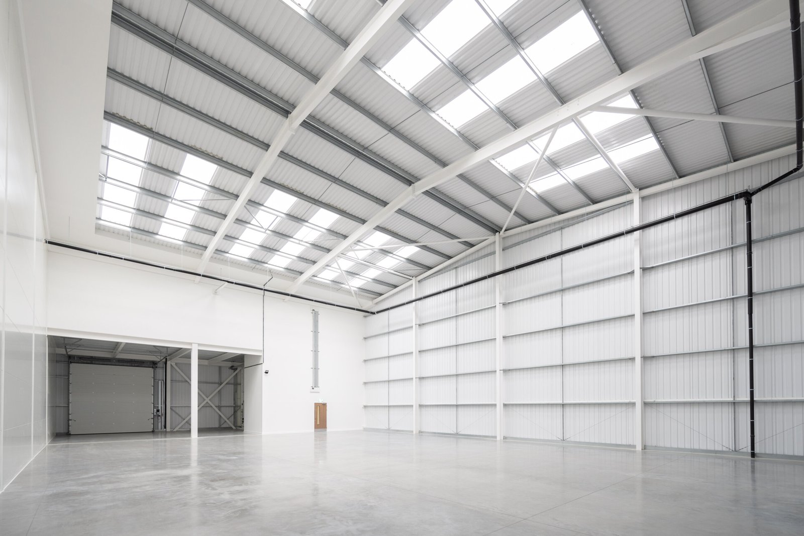 with electric loading doors and generous natural light. On the first floor, the fitted offices include comfort heating/cooling, WCs and shower facilities.