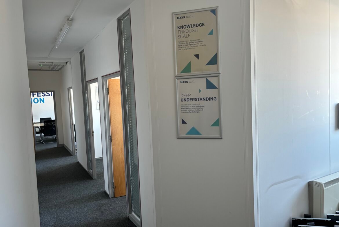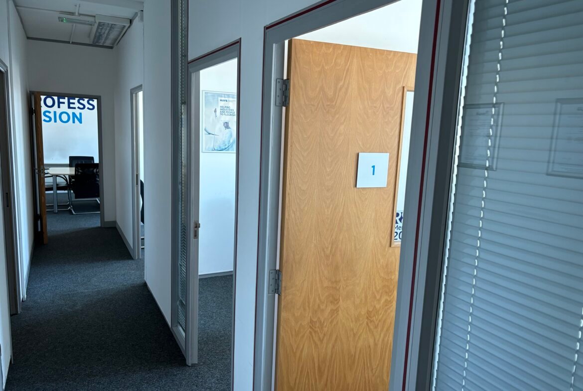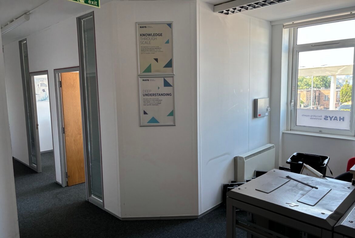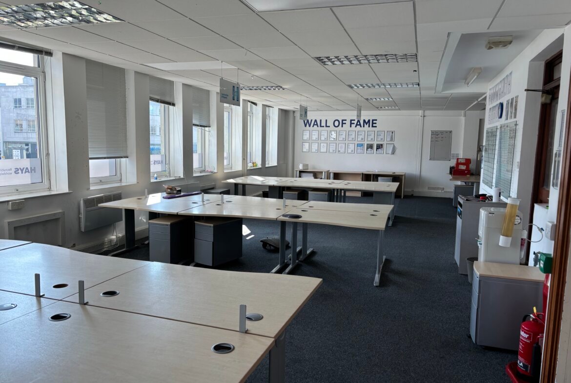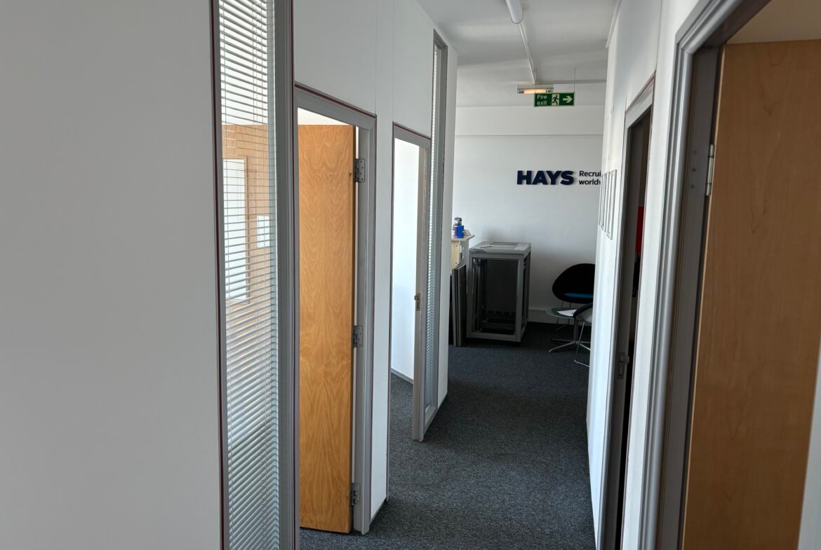 The available office space spans the first, second, and part of the third floors, offering a flexible layout to suit a range of business needs. Access is seamless via both a passenger lift and stairwell, ensuring convenience for staff and visitors alike.