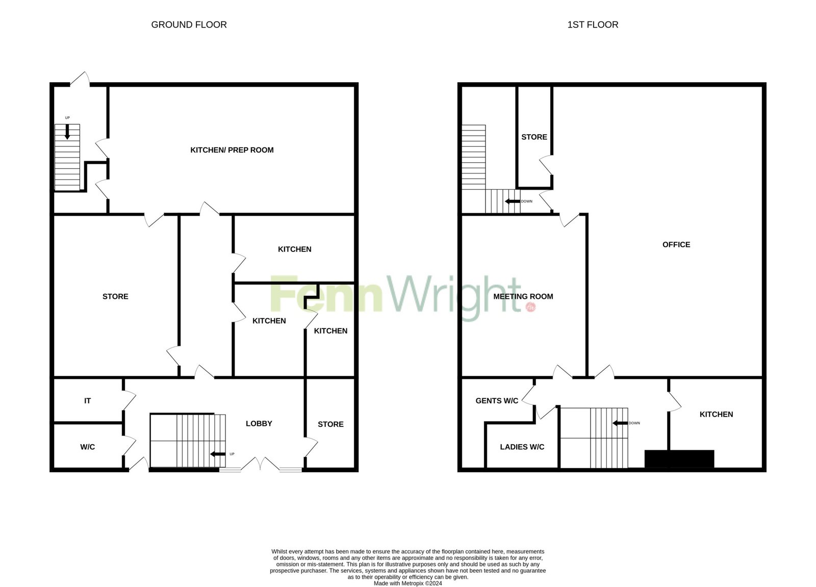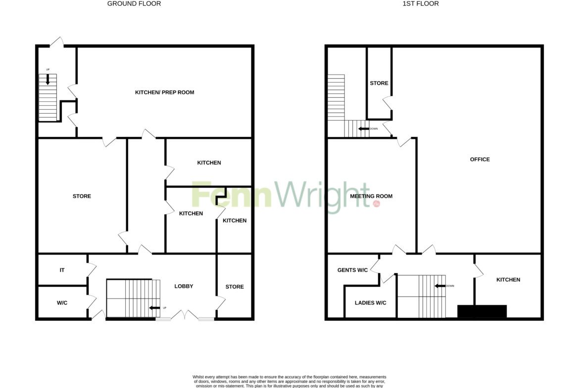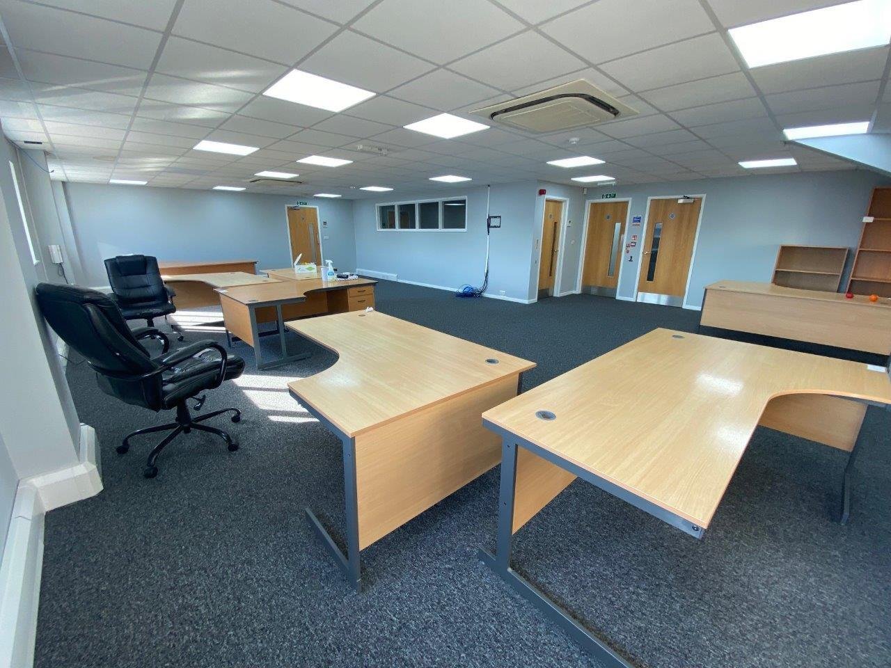 The ground floor provides a mix of storage / workshop areas, which feature LED lighting and AC in part (not tested) along with an accessible WC. To the first floor is a large open plan office area, meeting room, kitchenette/staff room, and storage room. There are also additional WC facilities.