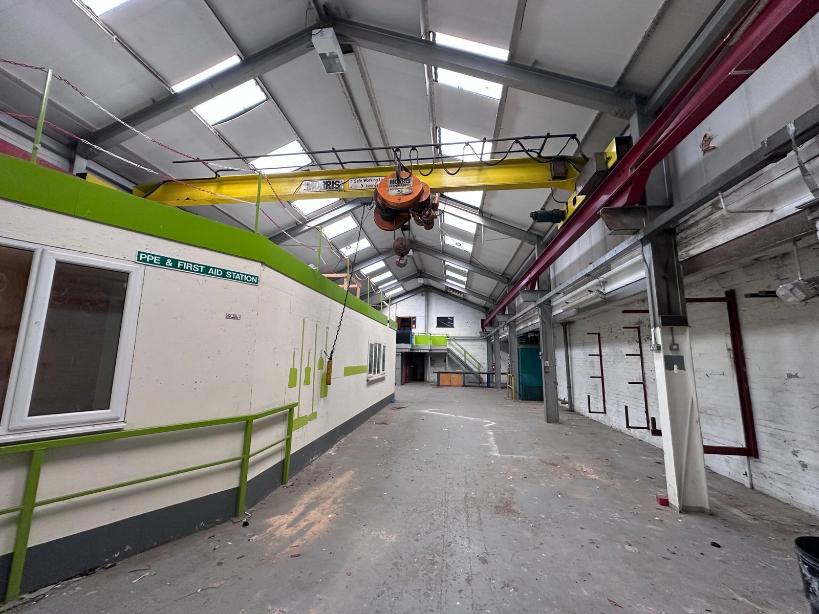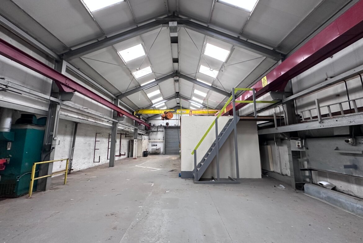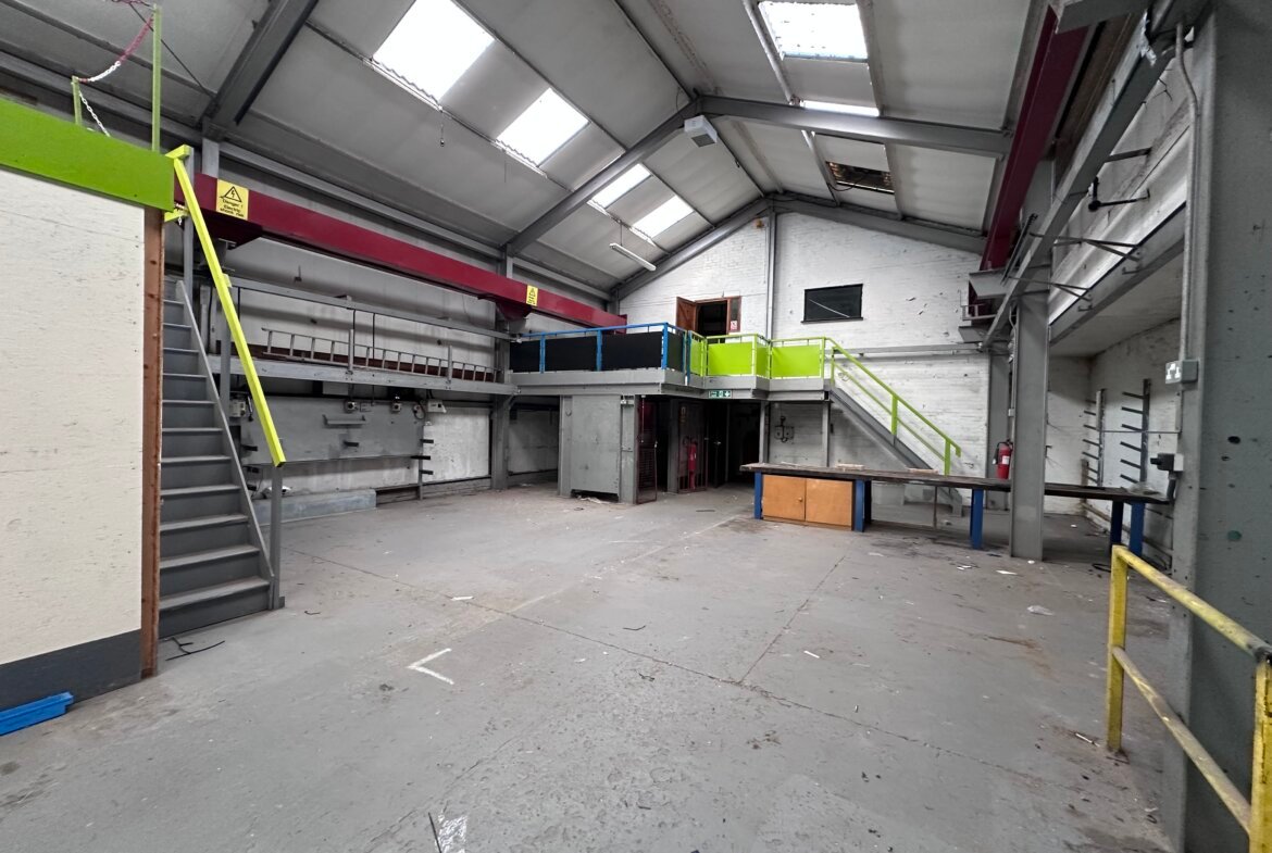 Internally, access is provided into the workshop by way of a roller shutter door, the workshop has an eaves height of approximately 5.28 metres. The property also benefits from a 5 Ton overhead crane. To the rear is a storeroom with an additional stores area to the first floor. There is also a small mezzanine structure to the rear of the unit. The offices benefit from ladies and gents WC's, kitchen and a reception office. To the first floor, there are two offices, which are essentially open plan, there is also a store adjacent, being of brick elevations with a mono-pitched roof covering, historically this was interconnected but has been blocked up and could be reconnected, if required.