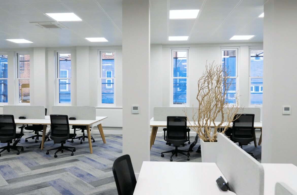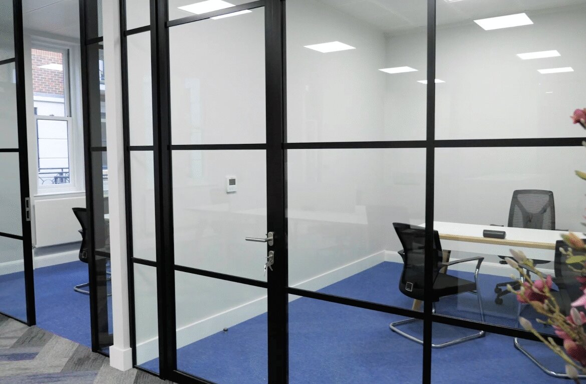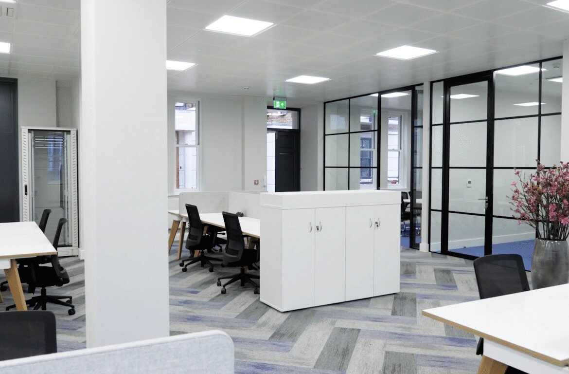 Bell Court is an attractive courtyard office development situated in the centre of Guildford. The available ground floor suite provides Cat A + space which is fully fitted & furnished, including fibre, providing low cap ex & a quick route to occupation. The space provides open plan accommodation with meeting booths, cellular offices, meeting rooms & kitchen. Secure basement car parking space is available at an additional cost. Please note photos were taken