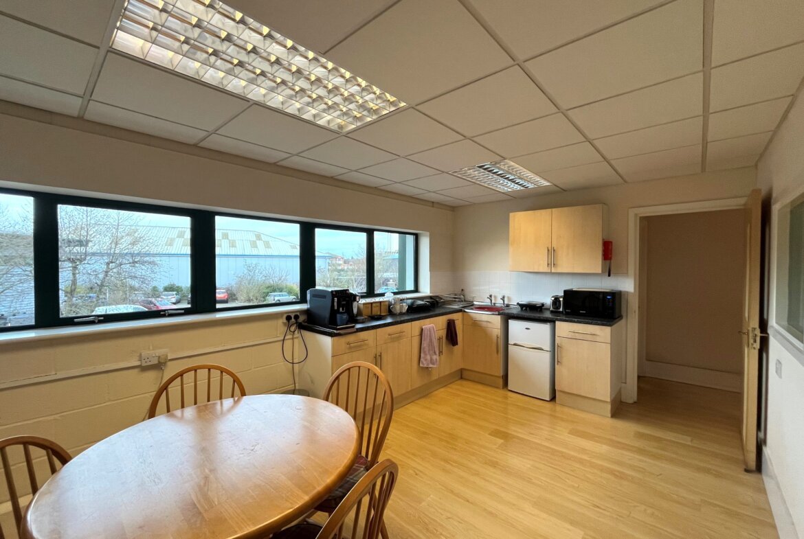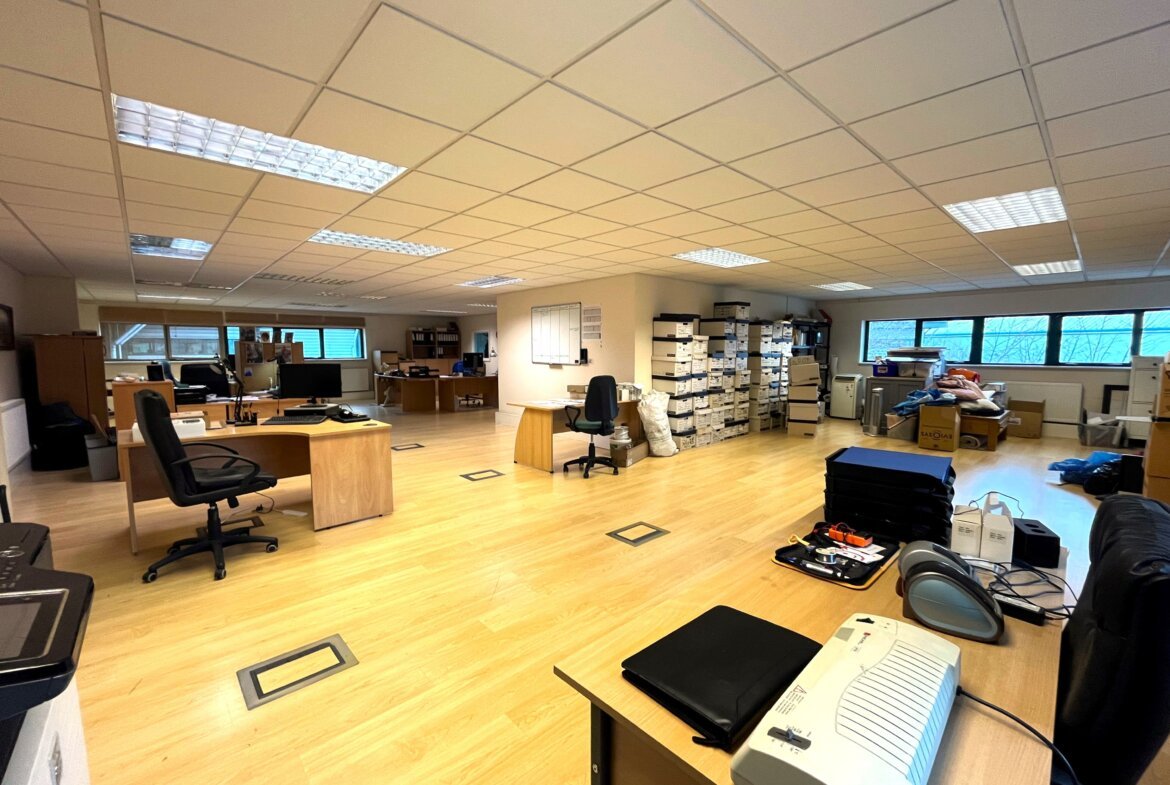 The property comprises a mid terrace industrial/warehouse of steel portal frame construction with elevations of full height insulated profile metal panels. At the front of the property is a well presented two storey section which comprises a mix of staff facilities on the ground floor and open plan offices on the first floor. The offices on the first floor are well presented and benefit from raised floors, suspended ceilings with inset lighting and gas fired central heating. The industrial area to the rear benefits from evaporative air cooling, LED lighting and a minimum eaves height of 6.10m rising to 7.40m at the pitch. There is a loading door to the right hand side which measures approximately 3.60m wide and 4.90m high. Externally there is a generous parking area to the front of the property as well as a dedicated area outside the loading door. Please refer to the floor plan for further information.