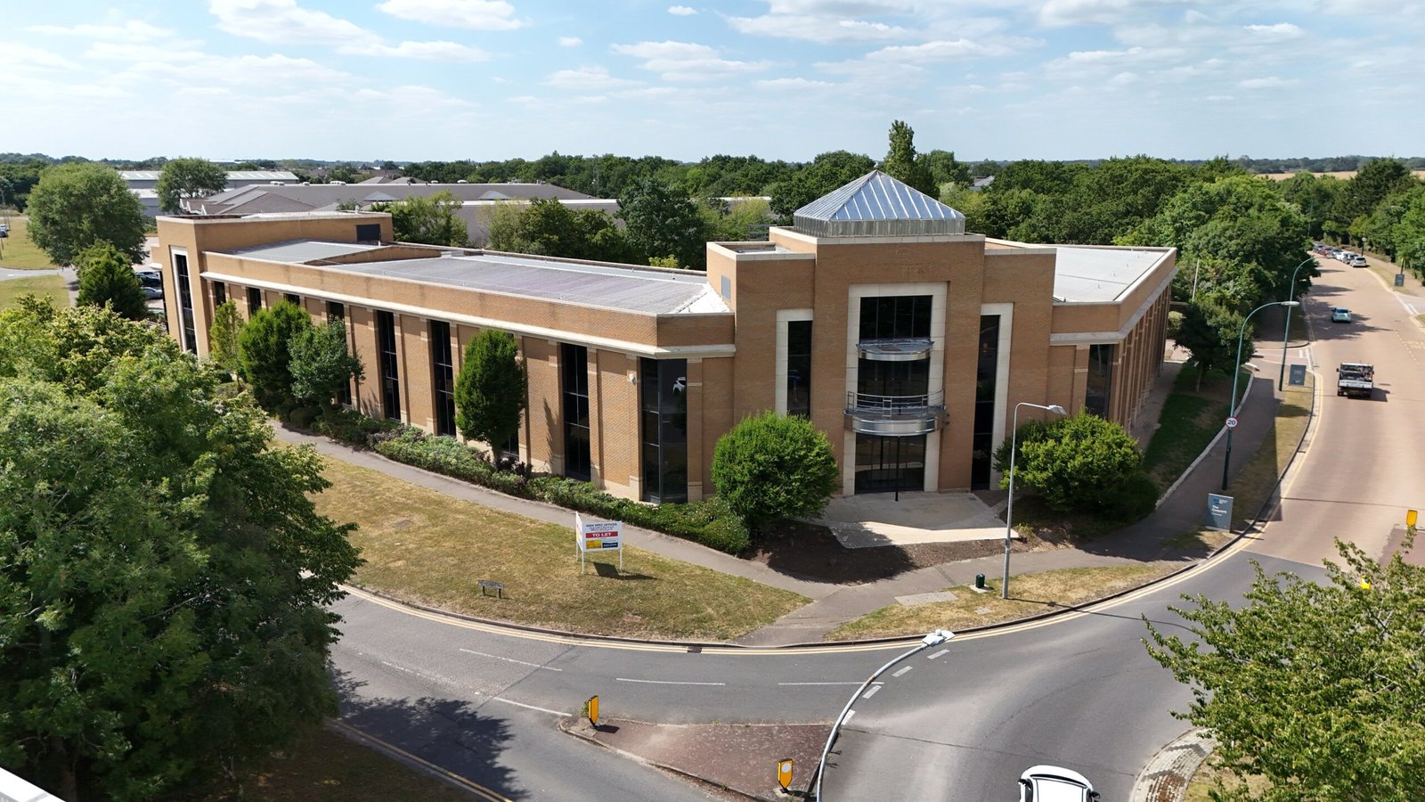 An imposing two storey detached office building, set within mature landscaped grounds, prominently located at the entrance of the prestigious Colchester Business Park.