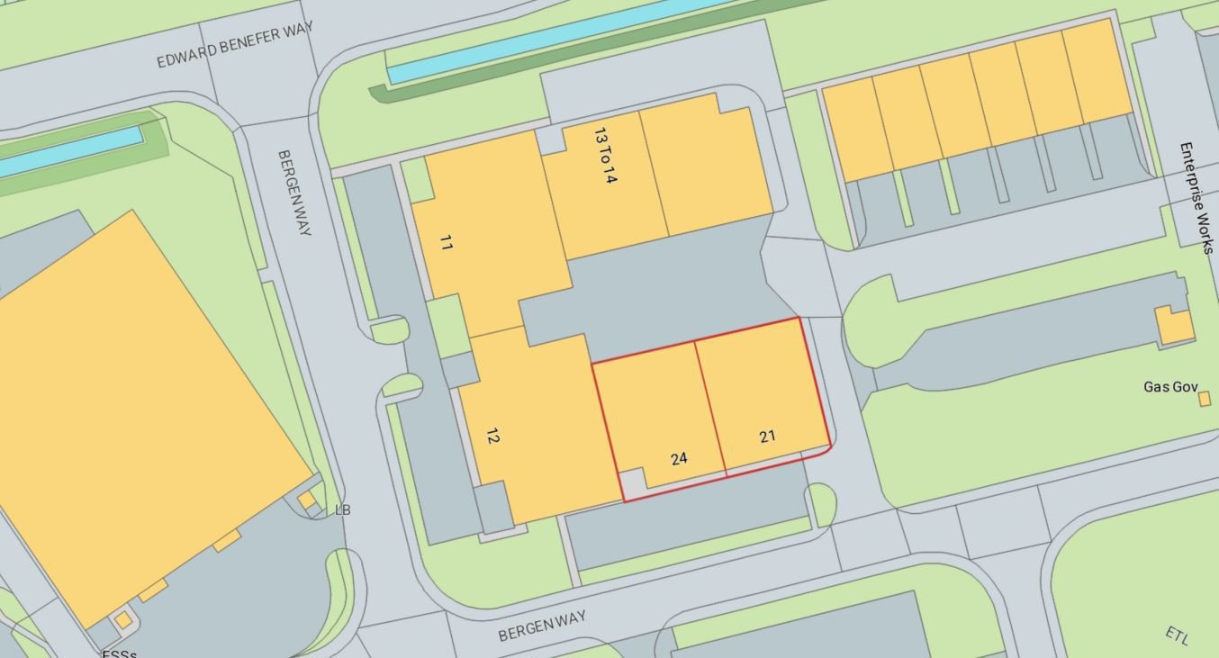 21 Bergen comprises a brick clad steel portal frame building with full width offices to the front. The offices are split into five individual offices with W/C just off the entrance lobby. Behind the offices is the main warehouse which has a concrete floor, W/Cs and a partitioned storeroom. LED tube lighting and redundant gas heaters are located in the warehouse . Clear height extends to 3.27m.