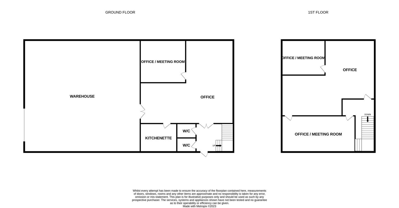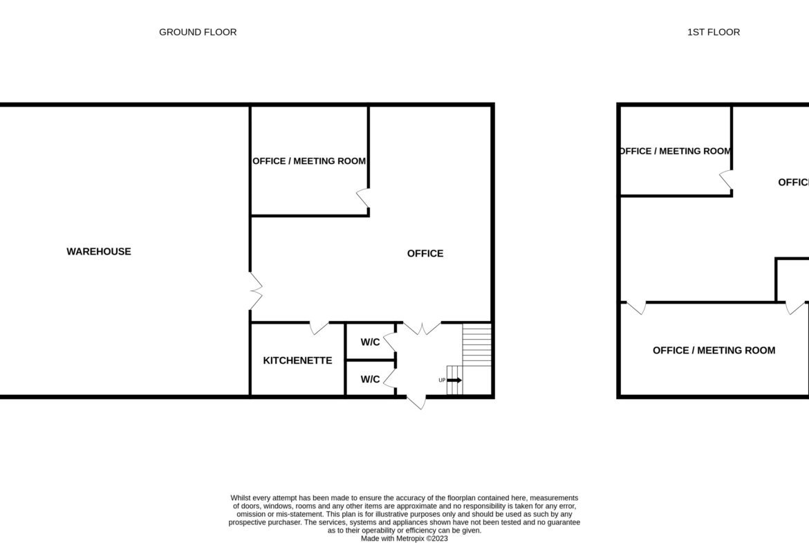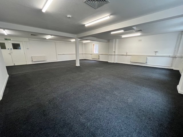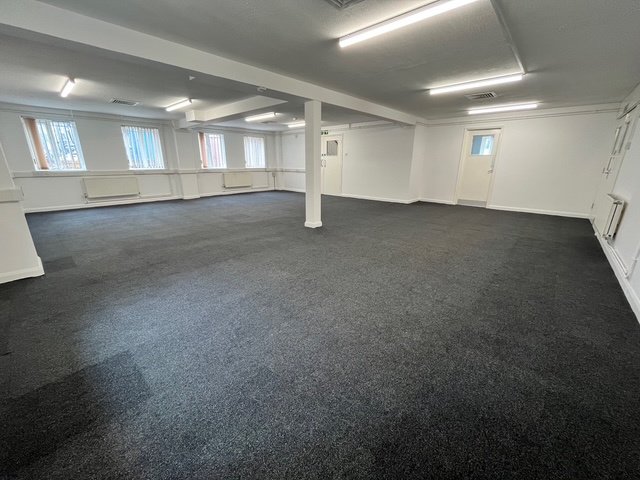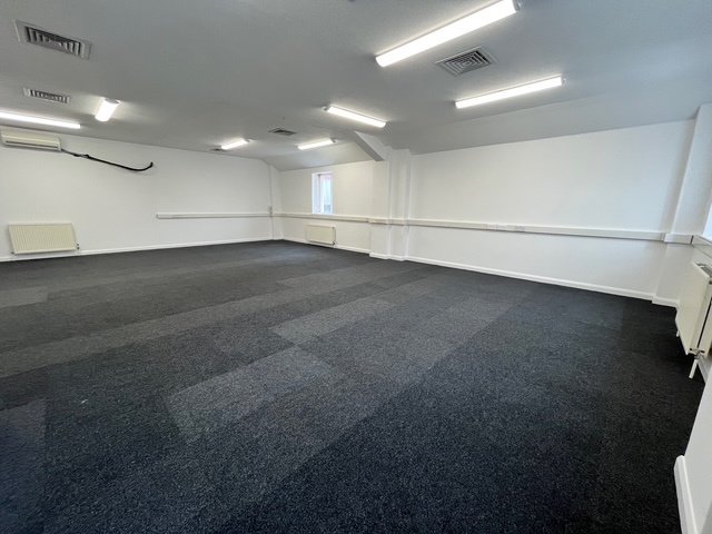 A personnel door on the front elevation leads to an entrance lobby with two W/C's, with a second personnel door leading to an open plan office area with additional storage / meeting room, and a tea point. On the first floor there is a large open plan office area, with two additional offices / meeting rooms, with LED lighting. Gas radiators provide heating with wall mounted Heating/Cooing units also present in part of the offices.