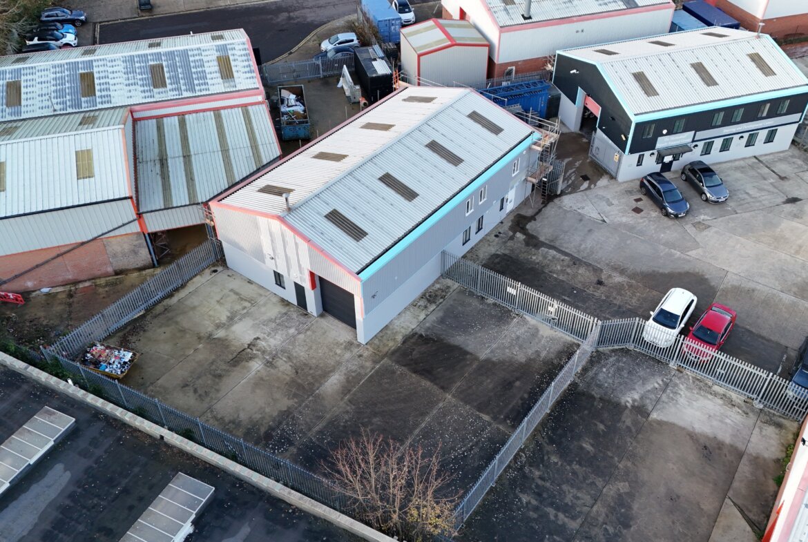 This detached unit is of steel portal frame construction with brick/block and part steel profile clad elevations under a pitched and insulated roof incorporating translucent roof lights.