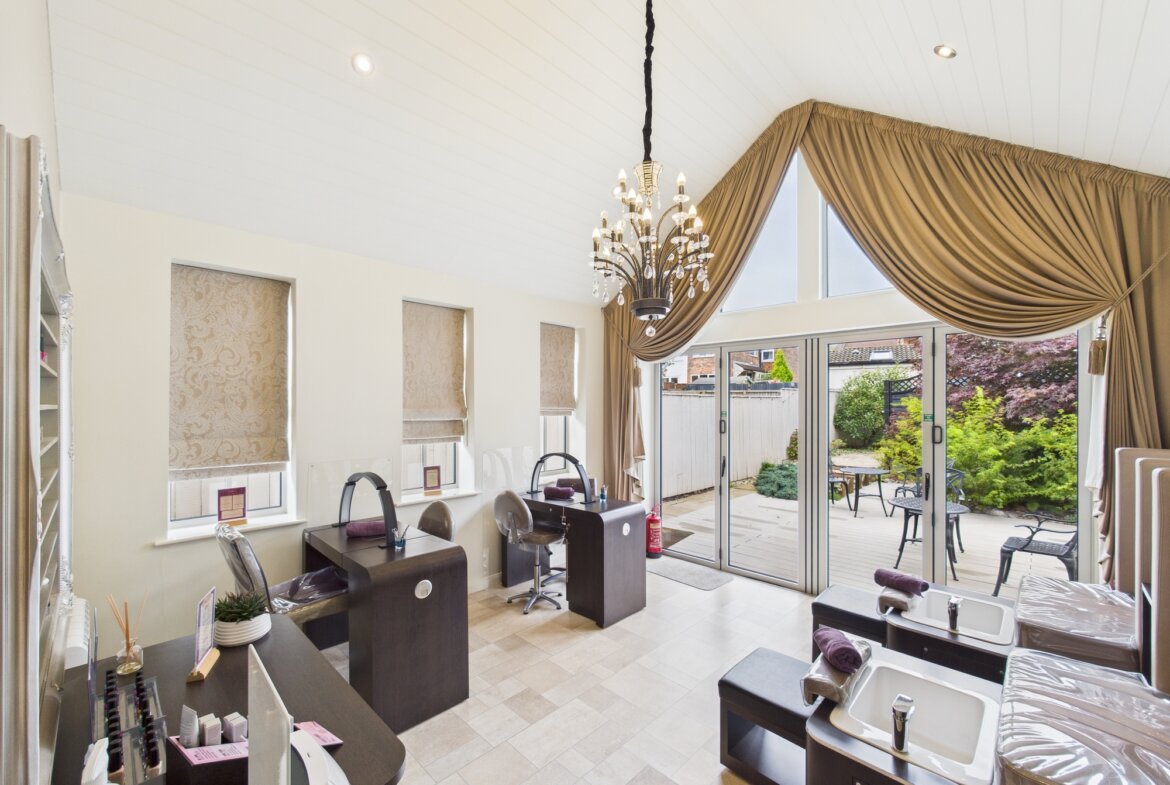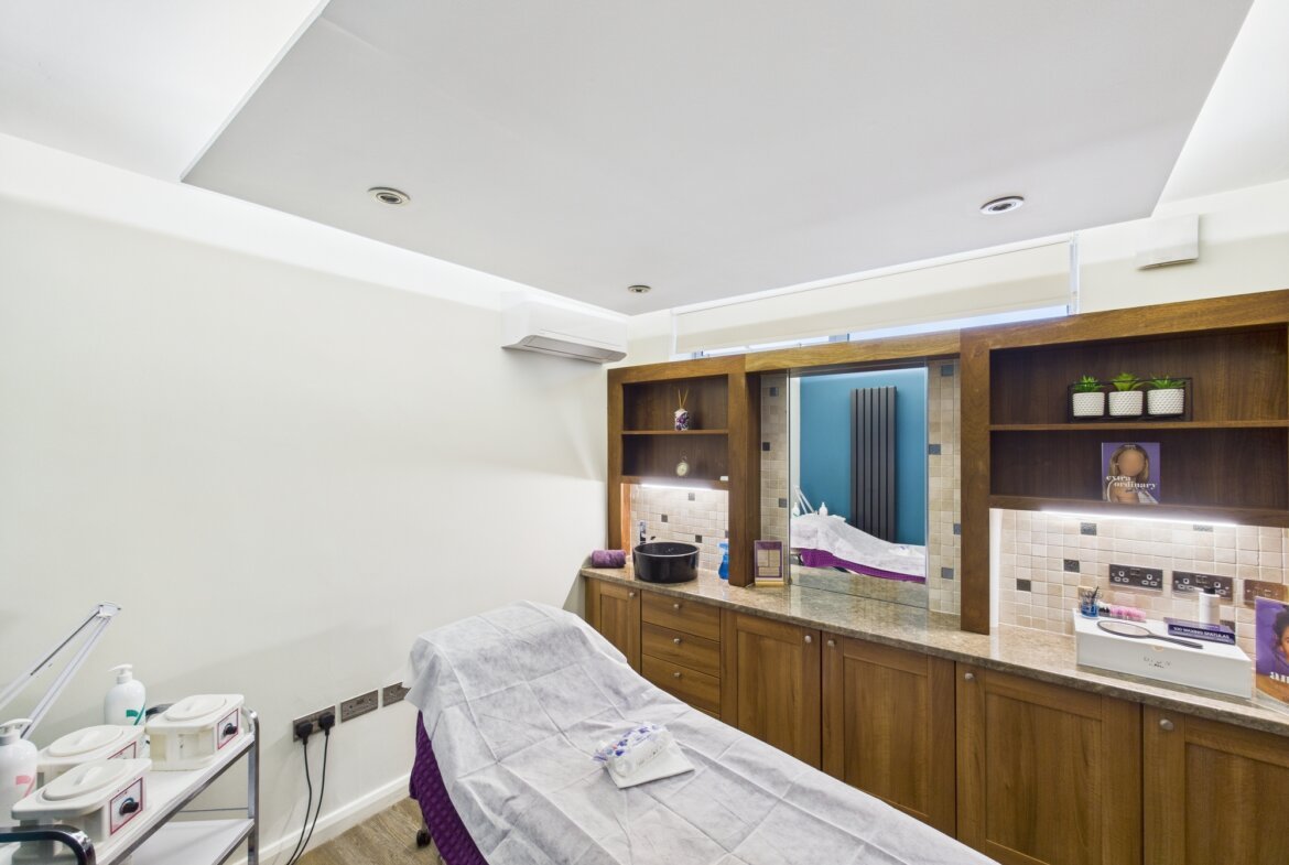 The property is spread across three floors and has six individual treatment rooms and a large open room to the rear that leads to the rear gardens of the property with bi-fold doors. The property has internal shutters that covers the front elevation and the rear.