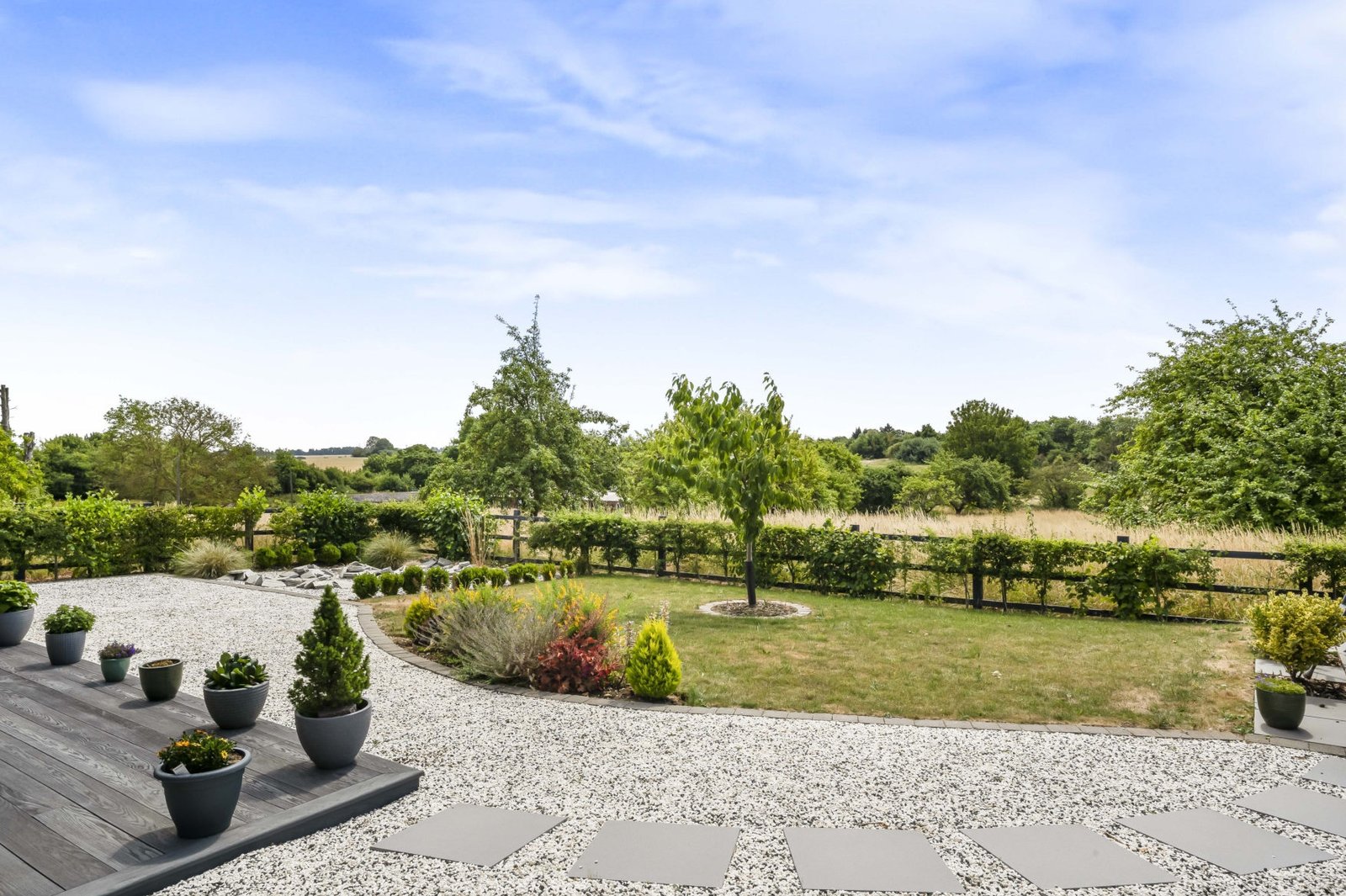 The south-facing rear garden has been carefully landscaped to take full advantage of the open views across the surrounding fields, creating a private and peaceful outdoor setting. The garden includes a well-kept lawn, a variety of shrubs and planting, a composite decked seating area, and an additional paved patio, ideal for outdoor dining or entertaining. Practical features include external lighting, power points, and a water tap.