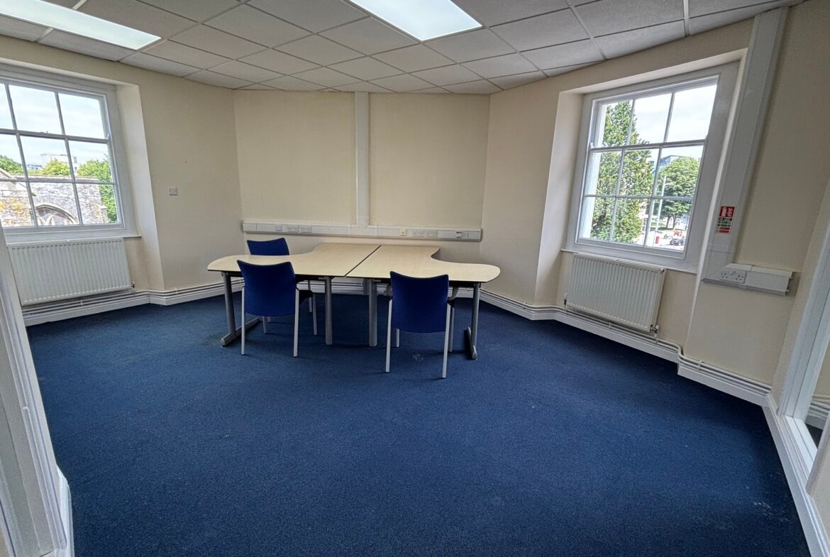 This prominent office building is located at the corner of Whimple Street and St Andrew Street, right in the heart of Plymouth City Centre. It enjoys a highly convenient position near key civic and legal landmarks, including the courts and Guildhall. The property is directly opposite Drake Circus and Old Town Street-the city's premier retail destinations. Its high visibility from Royal Parade and the St Andrews Cross roundabout enhances its presence. For added convenience, on-street pay-and-display parking is available, along with a public car park situated directly opposite the building.