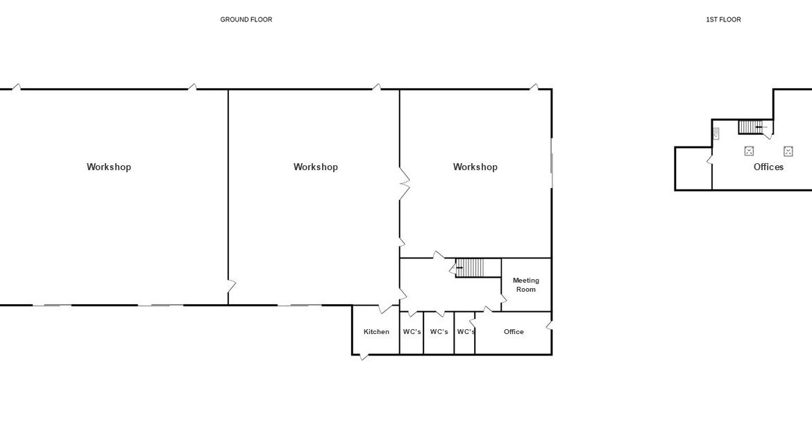 Offices, Kitchen and WC's - 850 sq ft [78.96 sq m]