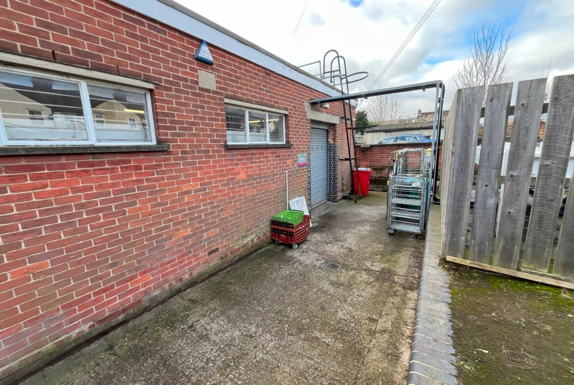 Externally, the property has a service/loading bay at the rear, while a block paved forecourt provides customer access.