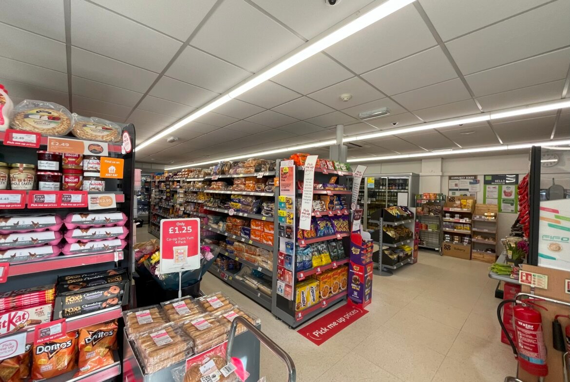 The main retail area benefits from a fully glazed frontage and is fitted with suspended ceilings incorporating air-conditioning, surface-mounted LED lighting, and vinyl floor coverings.
