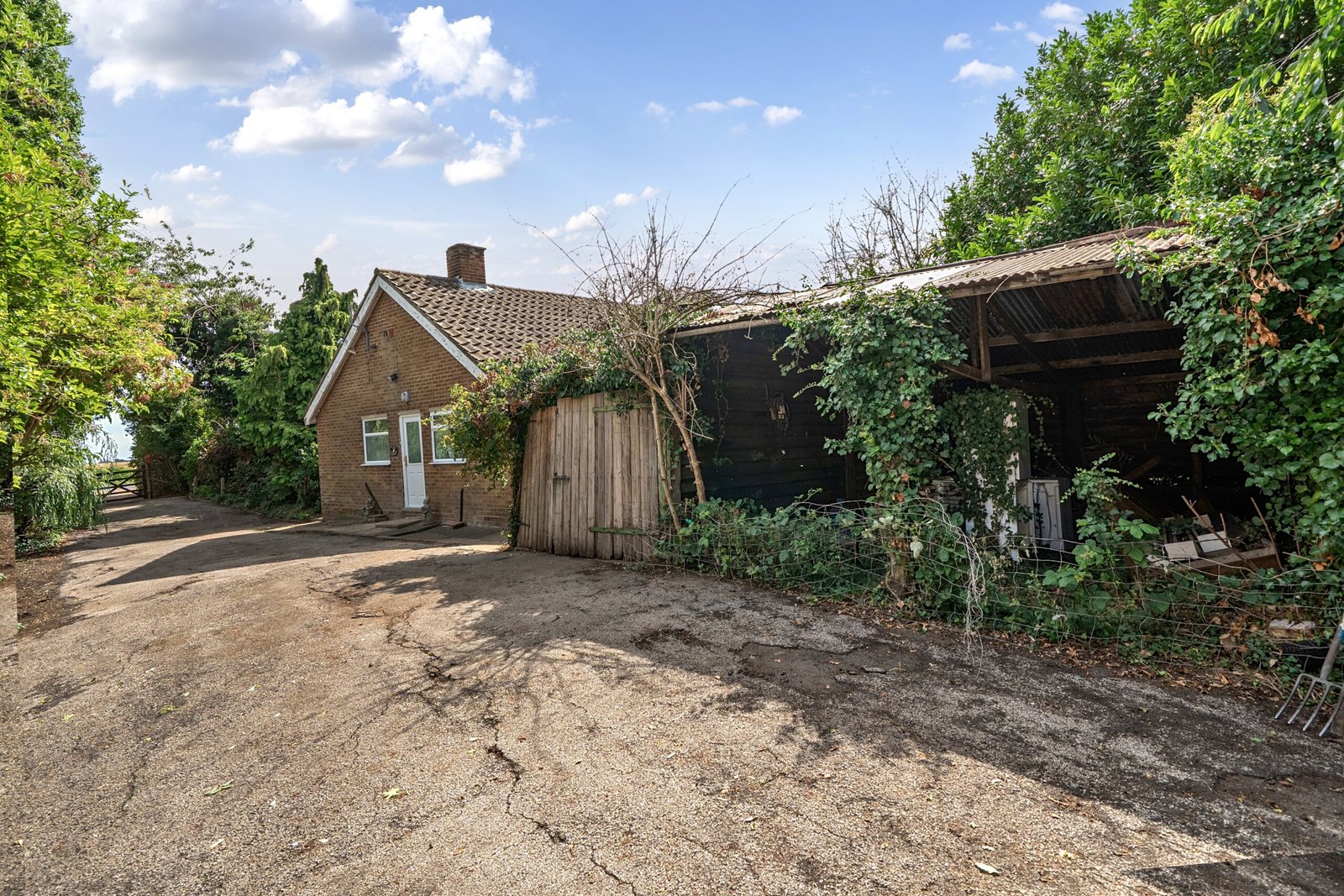 2-bedroom bungalow with brick garage & range of timber framed outbuildings