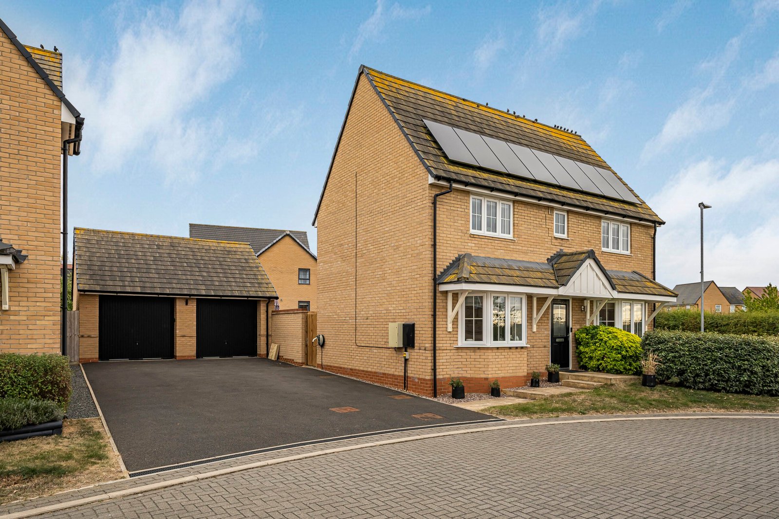 - Large driveway leading to the detached double garage