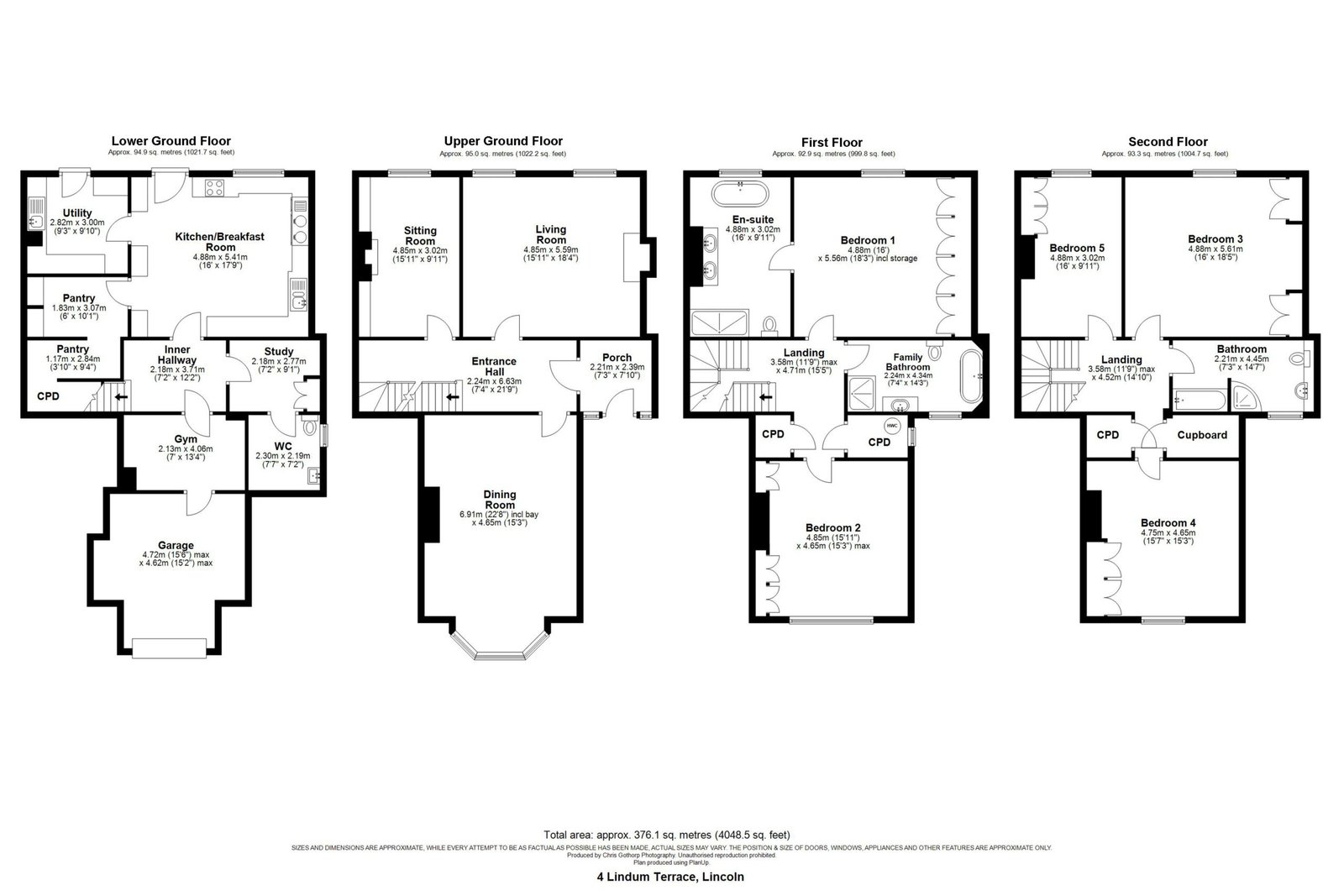 The property offers spacious accommodation full of character comprising of an entrance lobby, hallway, living room, dining room and sitting room to the upper ground floor, kitchen with walk in pantry, utility, study, cloakroom and gym to the lower ground floor, main bedroom with en-suite bathroom, further bedroom and bathroom to the first floor, along with three further bedrooms and a bathroom to the second floor.