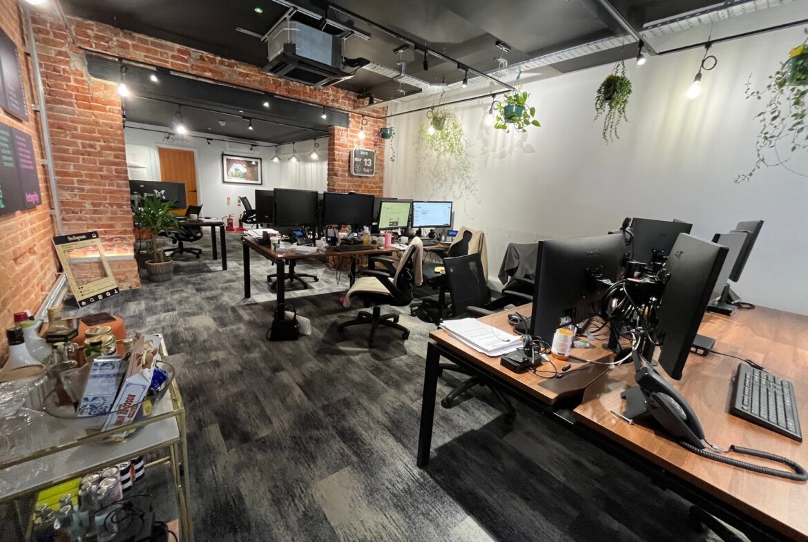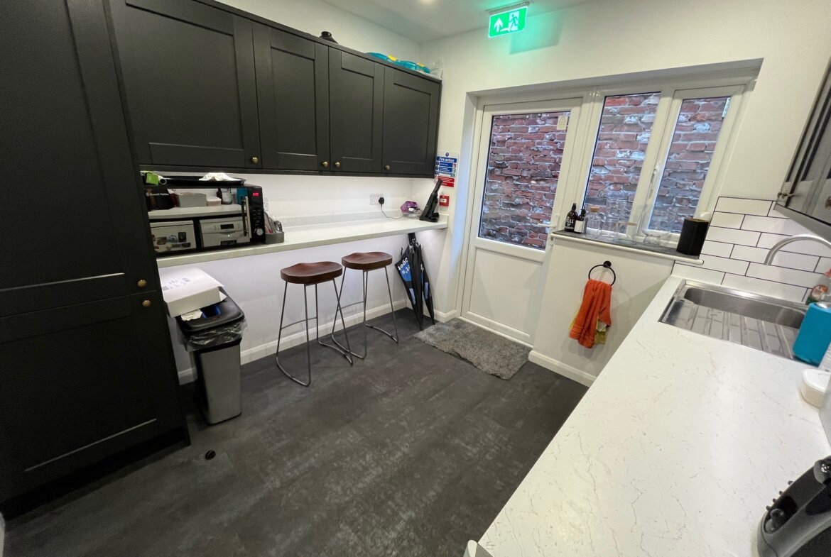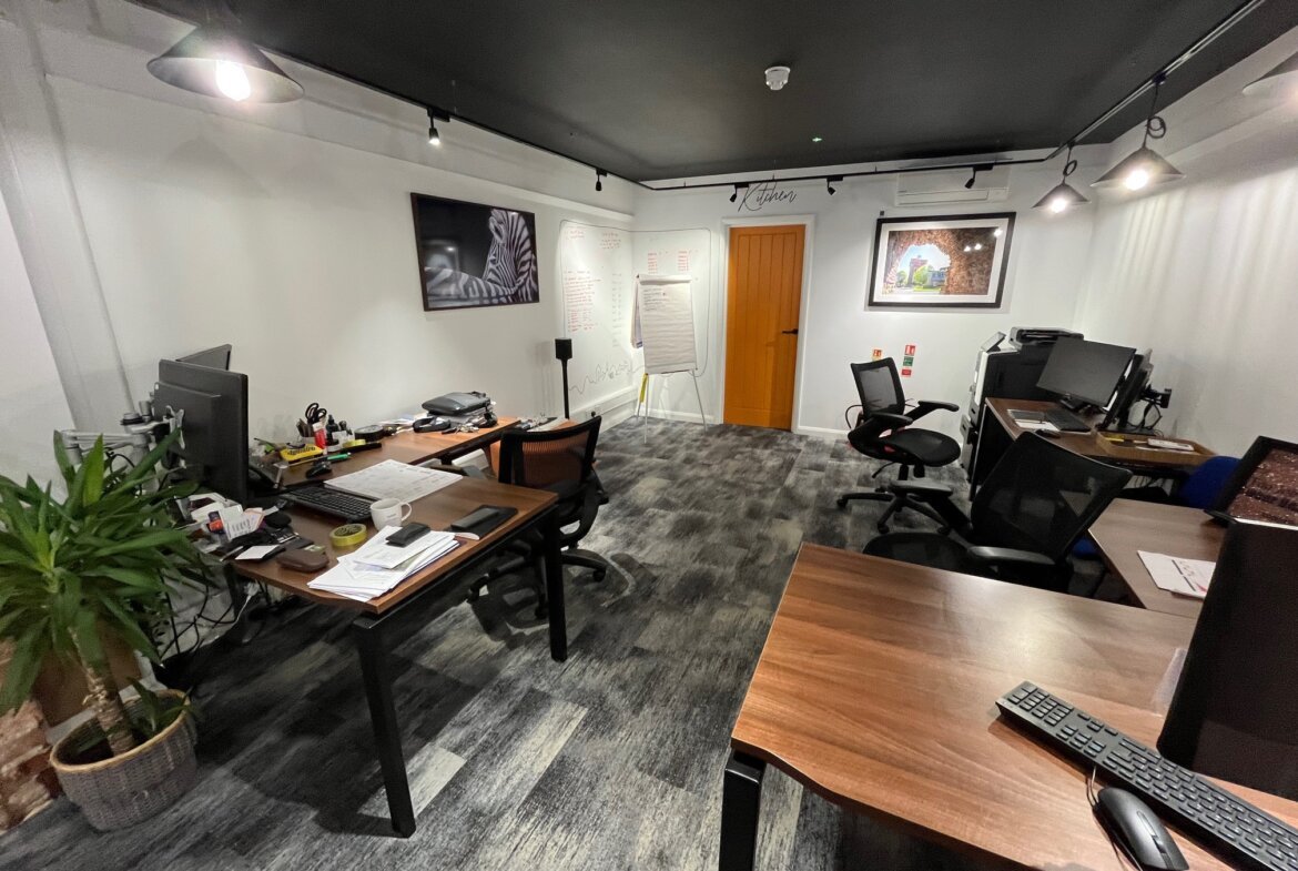 The offices benefit from carpeting throughout, wall-mounted heating/cooling cassettes, gas-fired central heating (not tested), ample electrical sockets, and modern LED lighting.