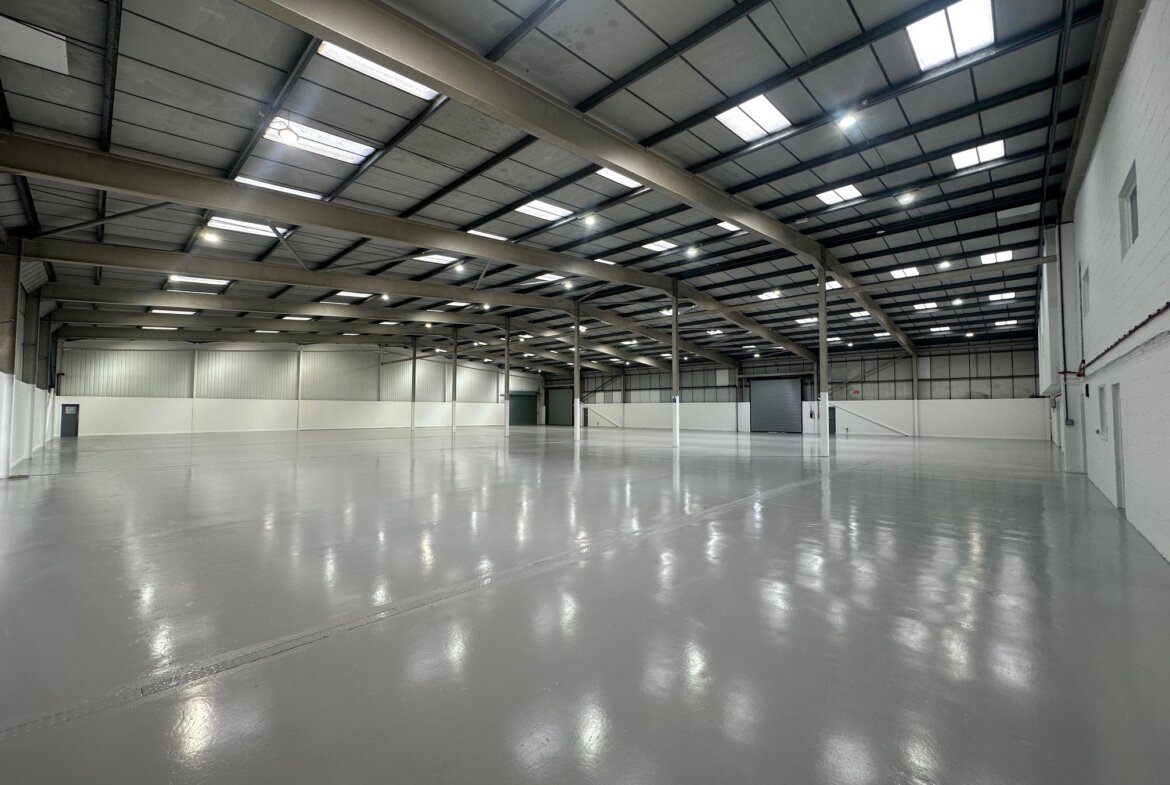 A substantial detached industrial unit stands within a self contained plot, which has recently undergone an extensive refurbishment. The building has a new overclad roof and respray. Three new electric shutter doors have been installed, and the offices and toilets have been refurbished, plus up-to date electrics, LED lighting and a new fi re alarm. The warehouse has benefited from new roof lights, and the front warehouse floor has been painted.