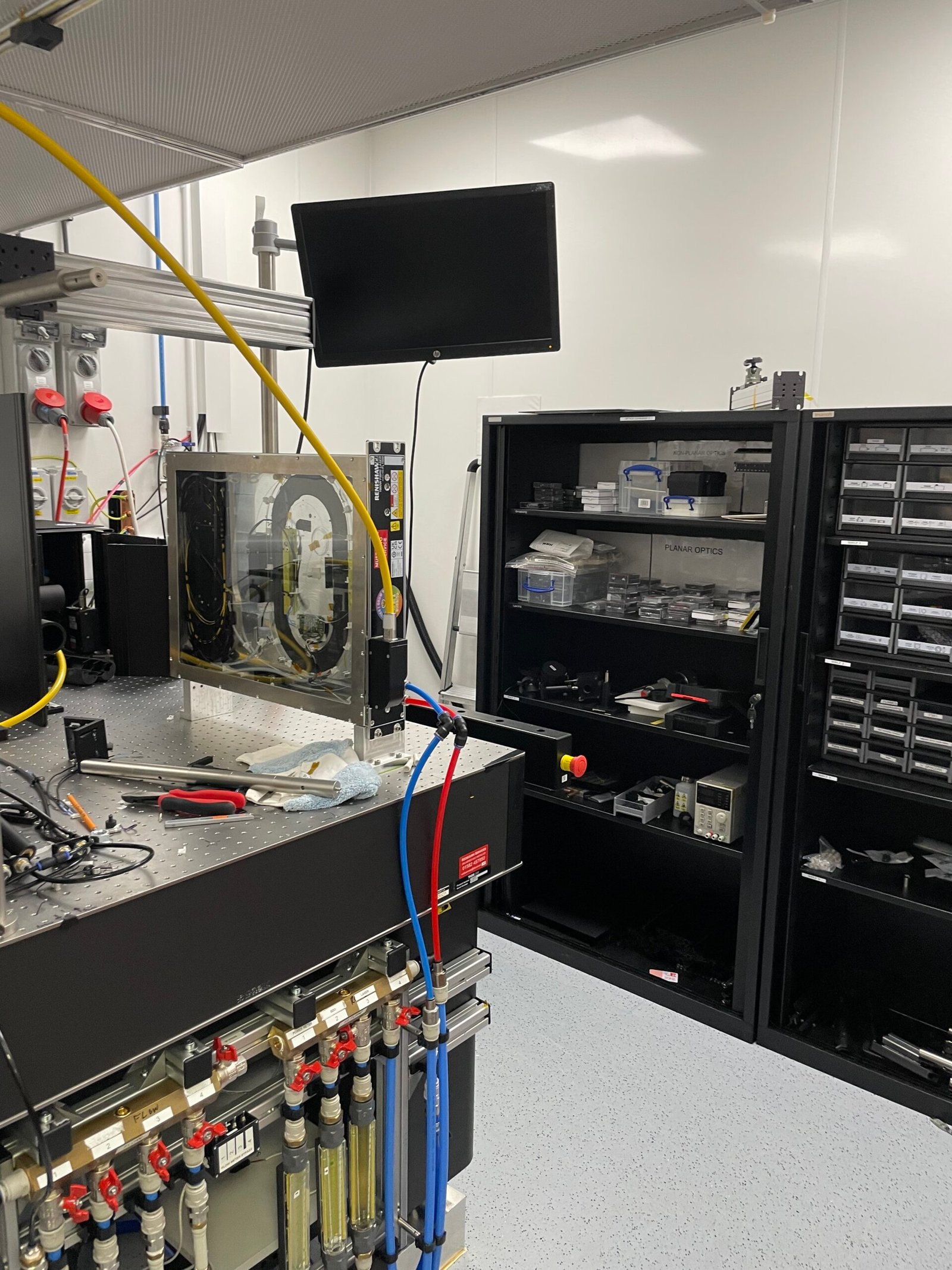 The building has been arranged as a mixture of office open plan areas, office rooms, meeting rooms, technical/laboratory/workshop areas and stores. The majority of the building has fully accessible raised floors, emulsion painted walls and suspended ceilings with recessed LED lighting and ceiling mounted Daikin comfort cooling cassettes.