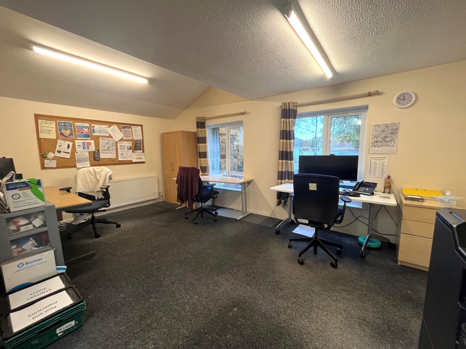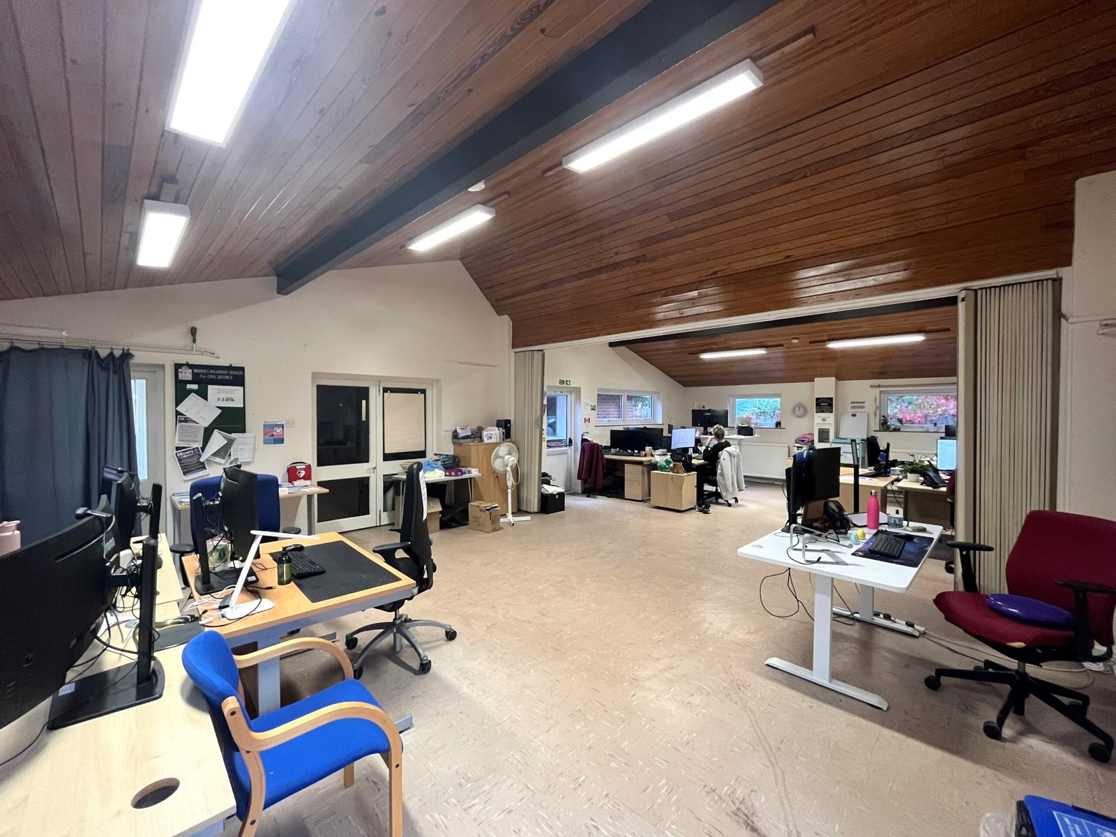 The property comprises two attached semi-detached buildings created of cavity brick with a concrete tile pitched roof. Internally the building is split into two halves made up of a number of office, storage and meeting rooms together with a large open plan hall. There are a number of WC facilities as well as a fully fitted kitchen with a good range of cookers and overhead extraction equipment. Please refer to the floor plan for further information. To the rear of the building is a part detached storage building and a car park capable of accommodating 6-8 vehicles. To the front of the building there are two additional parking spaces. Access to the rear car park is shared with the adjacent property known as Berridge House and accessed from Park Drive.