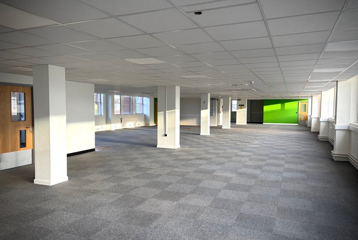 The specification benefits from suspended ceilings, Cat II lighting and perimeter trunking with 2x lifts and staircores.