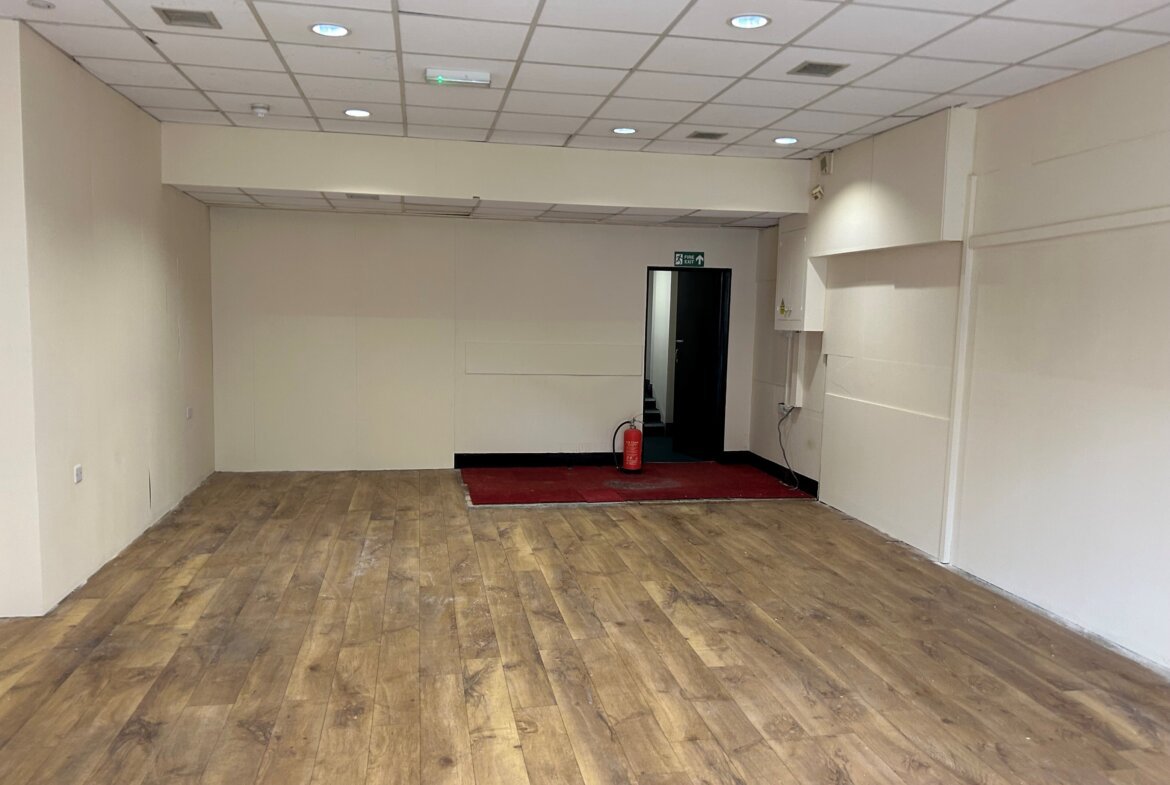 A prominent retail space located in a parade of shops with free parking close by. The unit comprises an open plan sales area, inner hall, rear office, kitchen and WC.