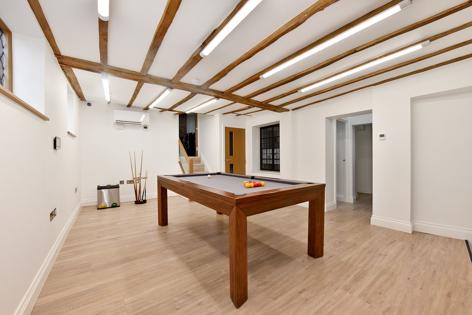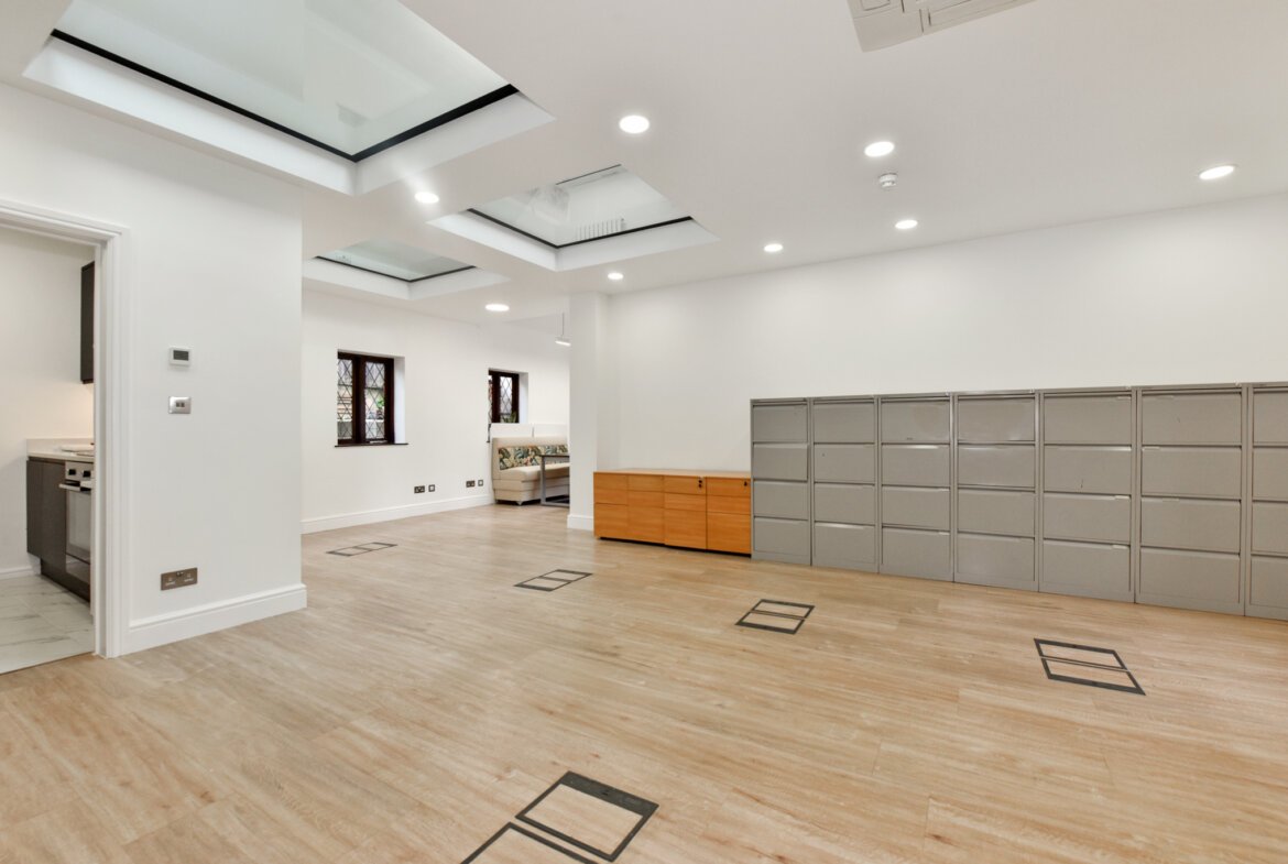 The building has been recently fully refurbished with an emphasis on the internal period features of exposed brickwork, timber beams and leaded light windows. This sits alongside modern installations of new glazed rooflights, air conditioning, integrated IT cabling and wood flooring.