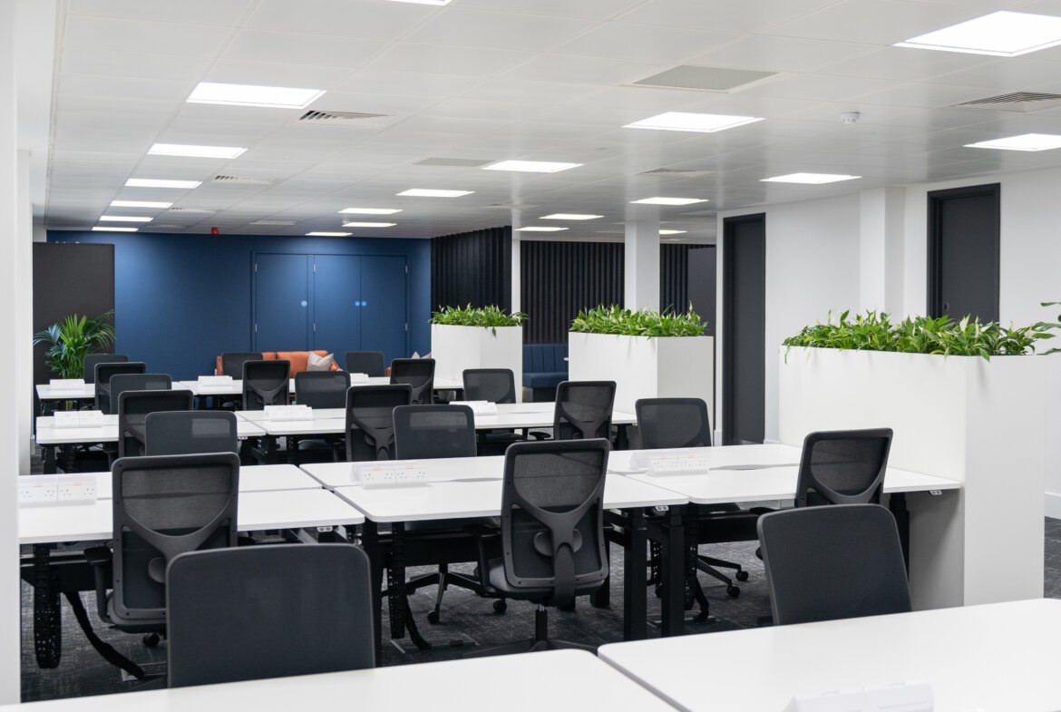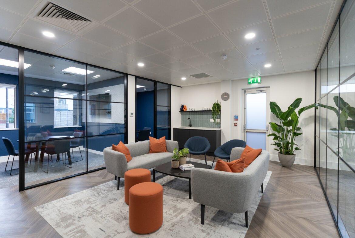 The Ground Floor suite of 3,060 sq ft is available fully fitted, with 28 work stations, zoom booths, large kitchen / break out area and separate client facing suite of meeting rooms. The building has an excellent Town Centre parking ratio and offers 14 parking spaces (1:219 per sq ft) - including EV chargers together with secure cycle storage.