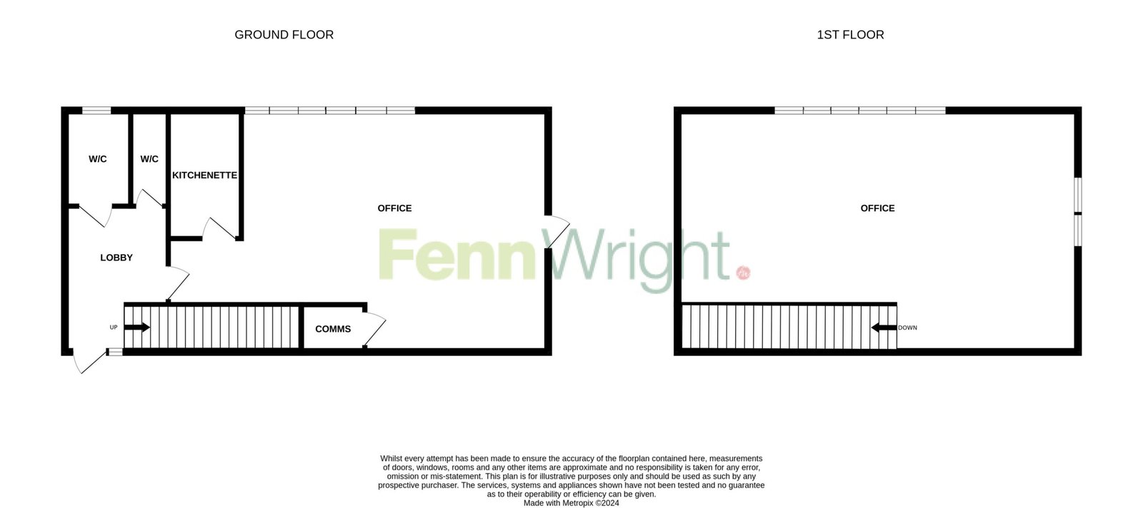A well-presented two storey, self-contained office, which benefits from an entrance hallway with stairs to the first floor, an open-plan layout, separate kitchenette and W/C facilities.
