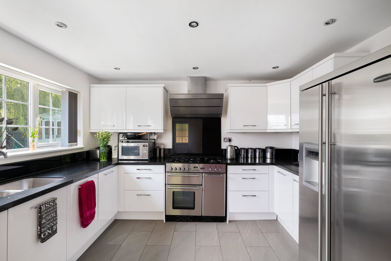 Double glazed casement windows to rear elevation, fitted wall base units with stainless steel one and a half bowl drainer sink, space and plumbing for washing machine and dishwasher, range master cooker with extractor over, space for American fridge, column radiator, storage cupboard housing Worcester oil fired boiler, Underfloor heating, double glazed door to side elevation.