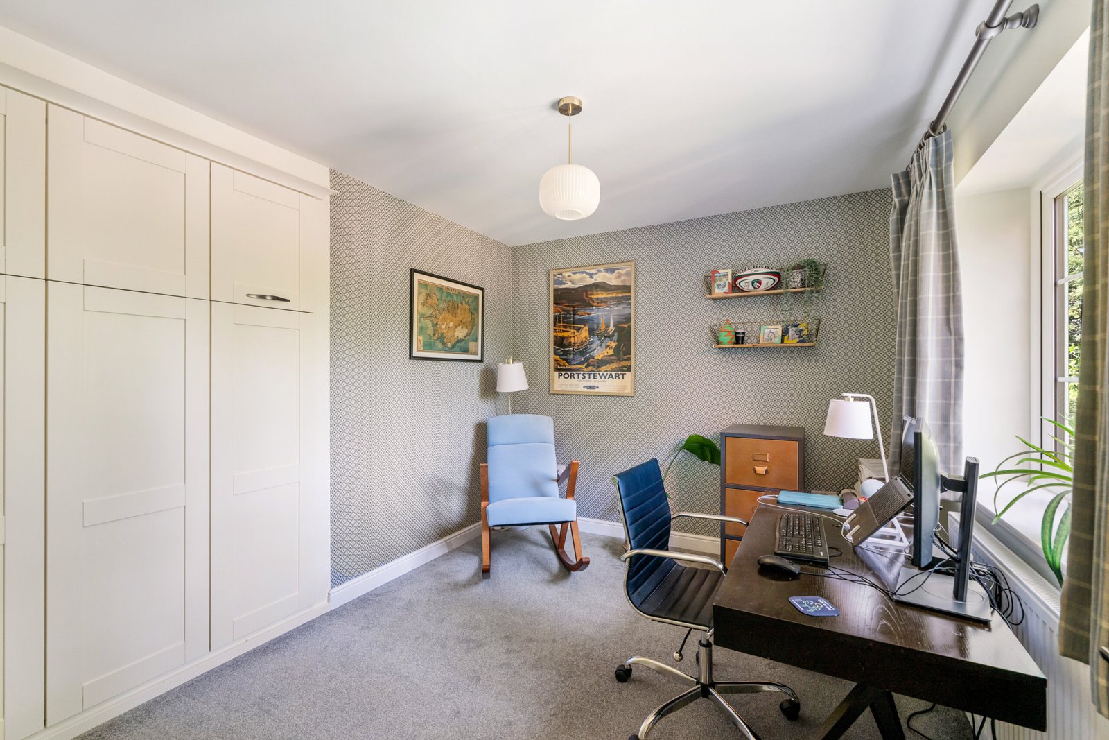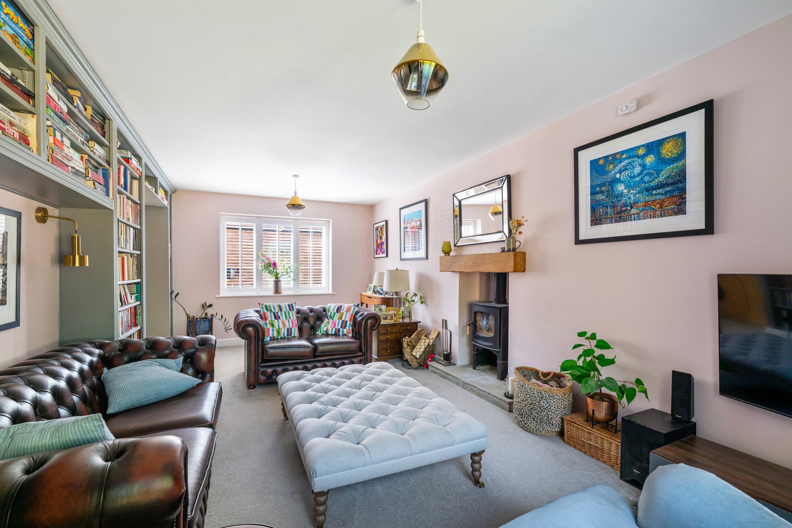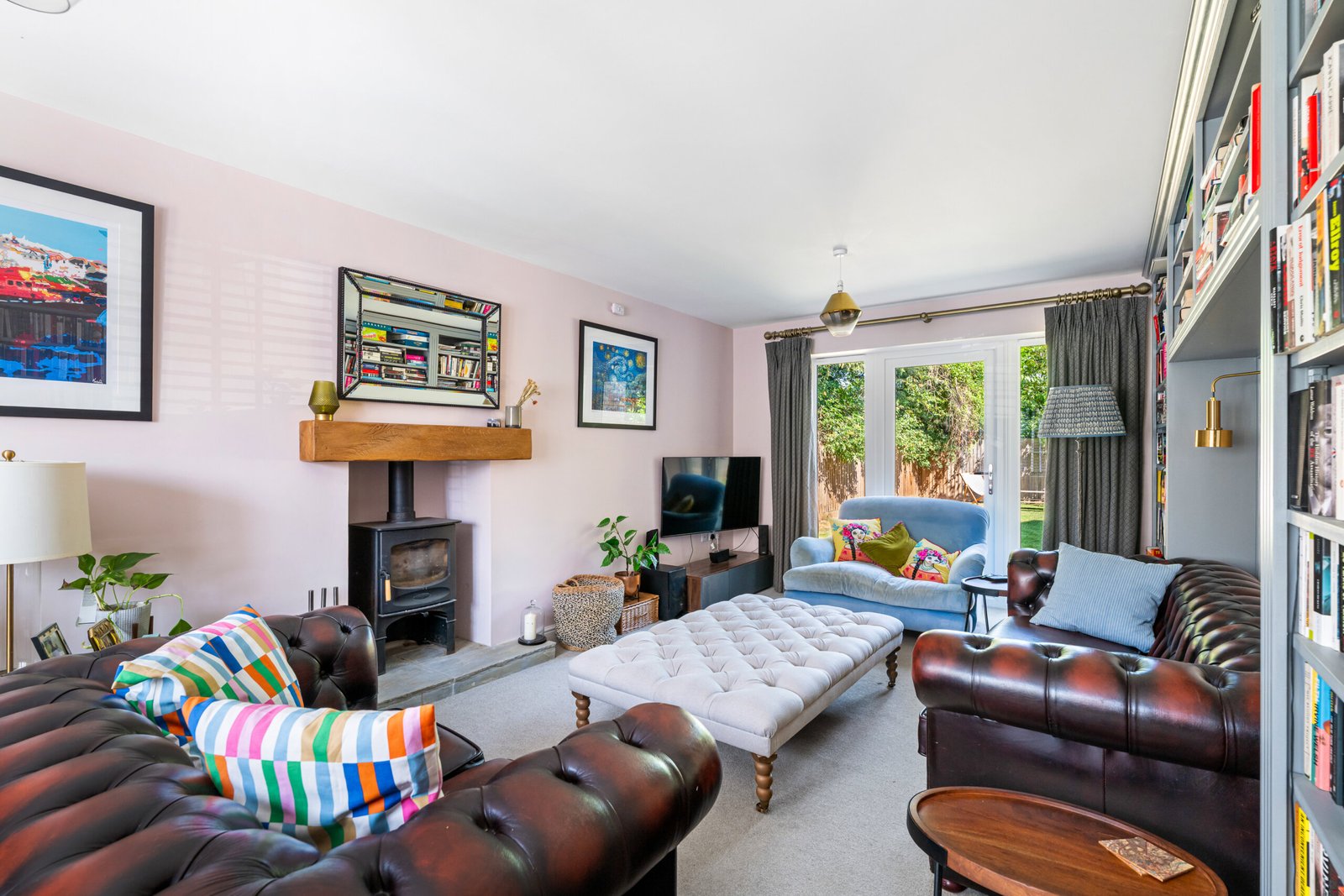 Double glazed windows to front and rear, double glazed door opening to rear garden, wood burning stove inset to fireplace, bespoke fitted shelving.