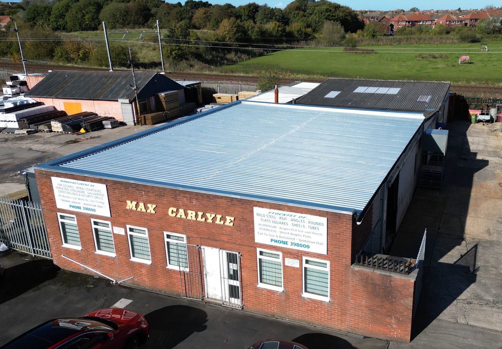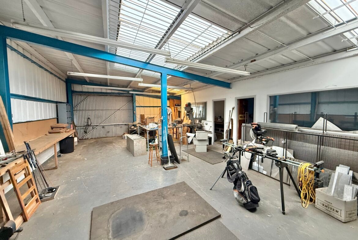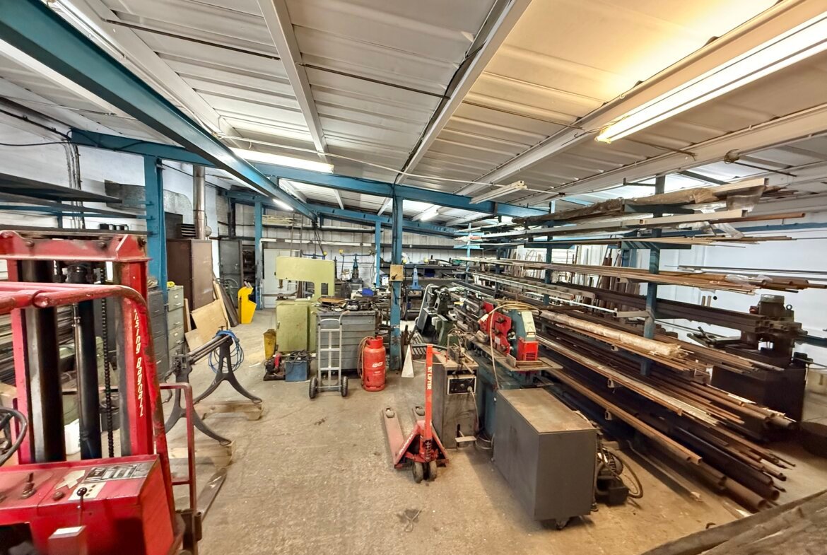 A workshop / warehouse / light industrial unit, presently used for metal fabrication: