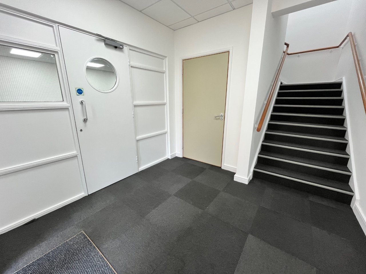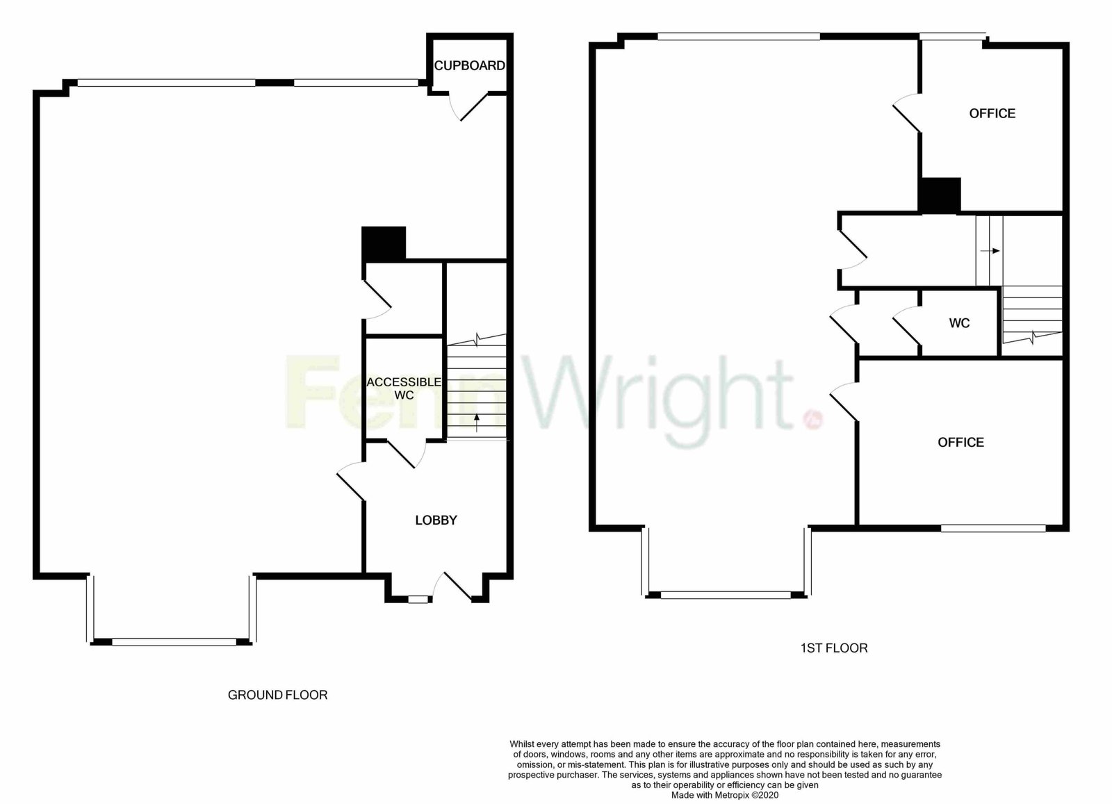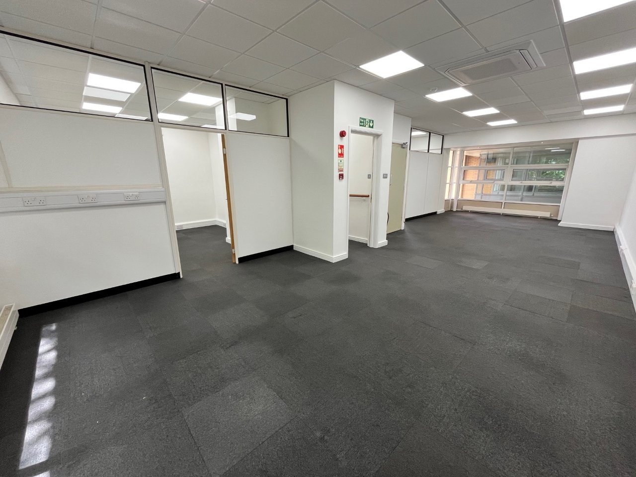 There is an entrance lobby, with accessible WC and stairs, with access to an open-plan ground floor office area. The first floor features an open-plan layout along with two separate offices / meeting rooms and WC. The property benefits from suspended ceilings with recessed lighting, air conditioning, gas-fired central heating (not tested), carpeting throughout, and a fire alarm system.