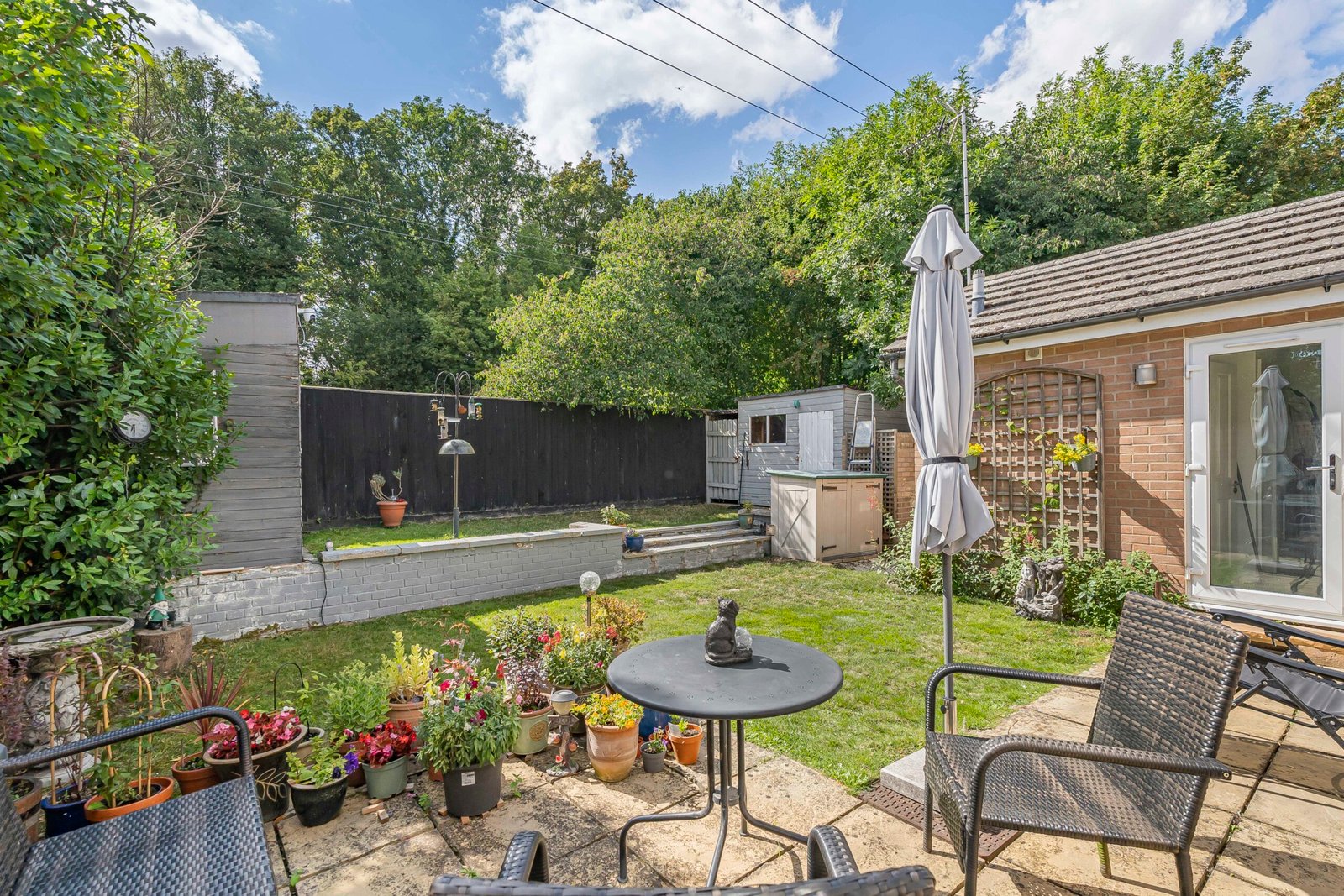 The fully enclosed and part walled rear garden enjoys a south westerly aspect and is mostly laid to lawn with a patio seating area, an outside tap, external lights, storage sheds and gated side access.