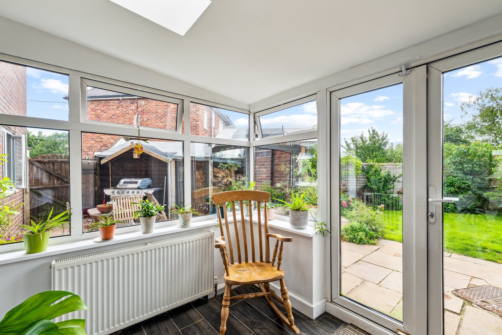 Double glazed windows and French doors to rear elevation, full replacement roof with two skylights.
