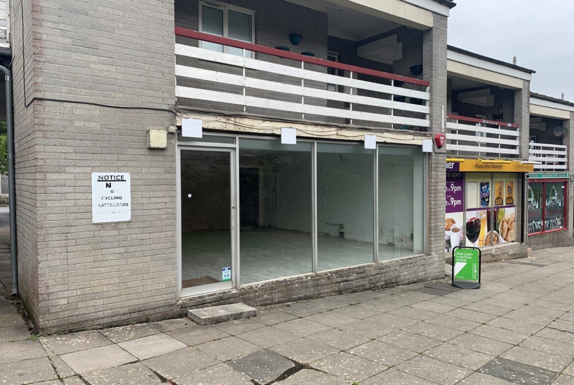The premises comprise of a ground floor retail unit with staff facilities located to the rear. Parking is situated to the rear of the residential block and accessed via Hooe Road.