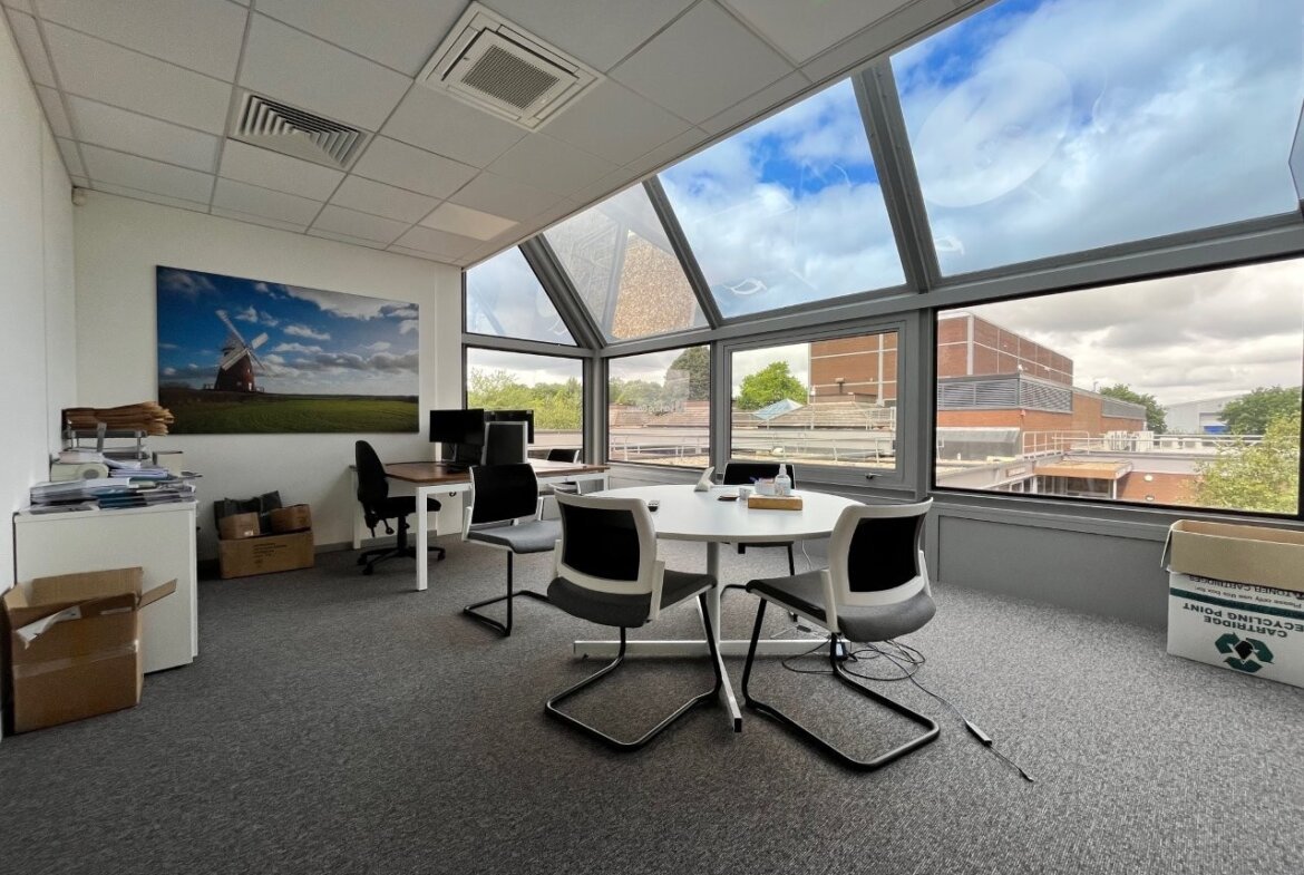 The office is situated within the popular Phoenix Square office complex located directly adjacent to the A12/A120 interchange which provides excellent road links to east cost ports of Harwich and Felixstowe and Stansted airport.