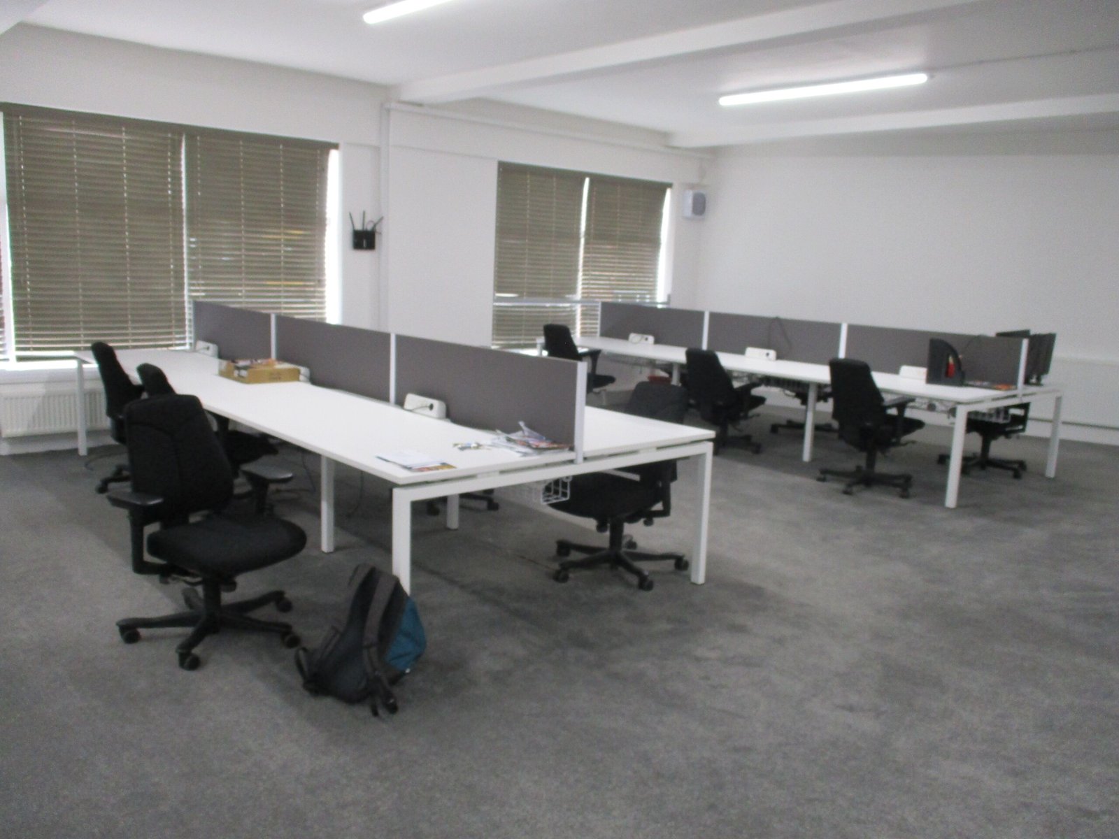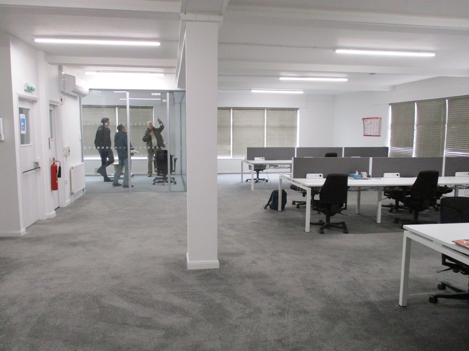 The accommodation is at first floor level accessed from Exchange Street via door/stairs (black door shown on photo). The space is open plan with additional male and female WCs, a small kitchenette and a small storage room. The space has been fully redecorated and benefits from a gas fired central heating system, LED lights and power sockets. The space also has excellent natural light from the large windows to two sides and also benefits from air conditioning.