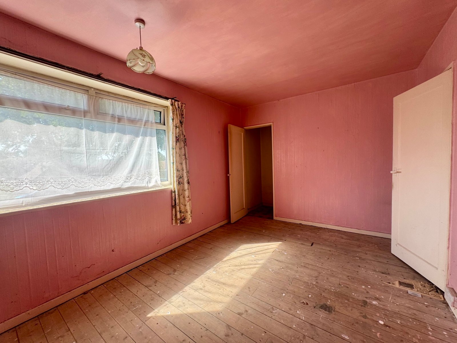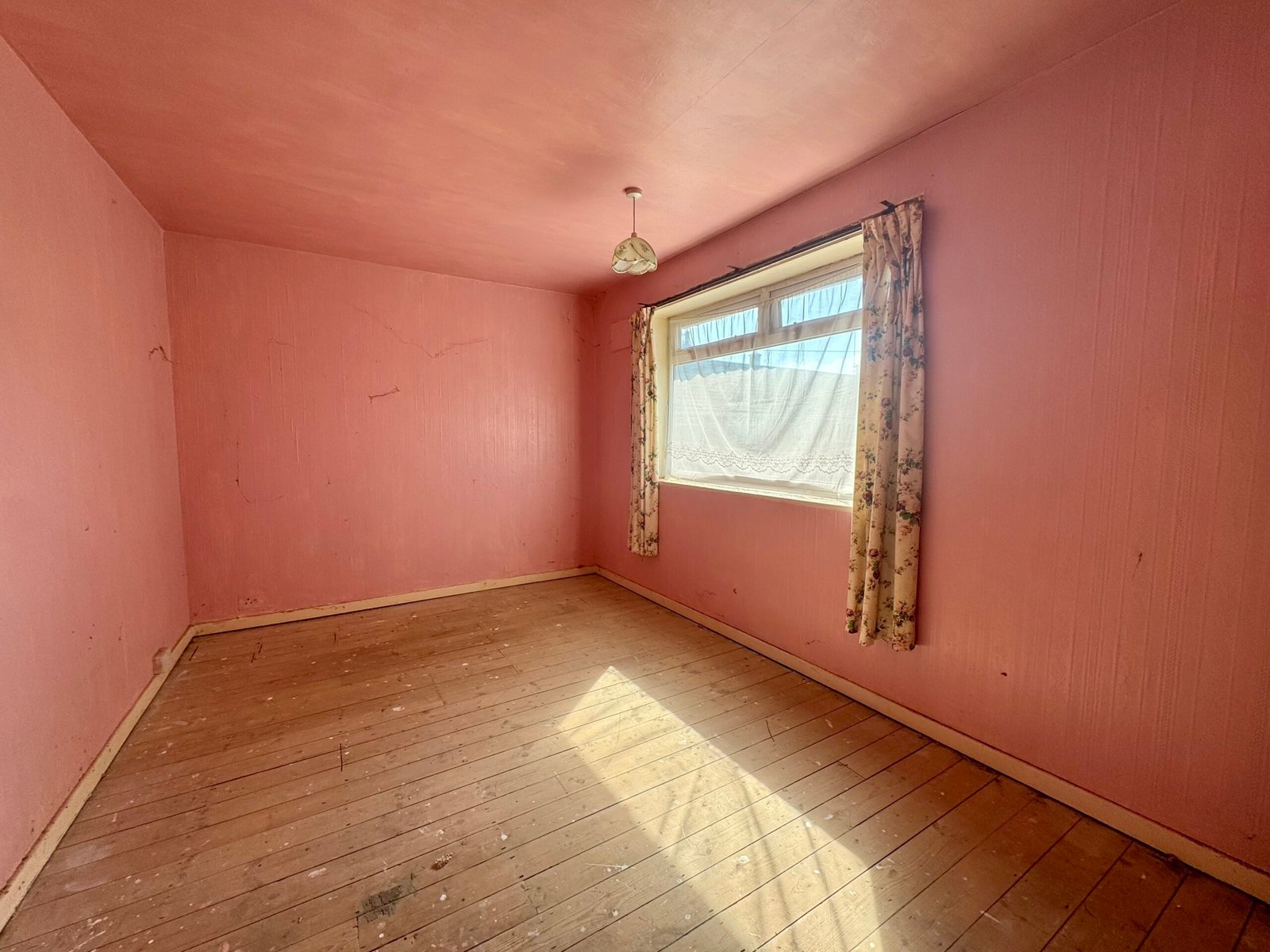 Bedroom Two: Double bedroom with white uPVC double glazed window and built in wardrobes.