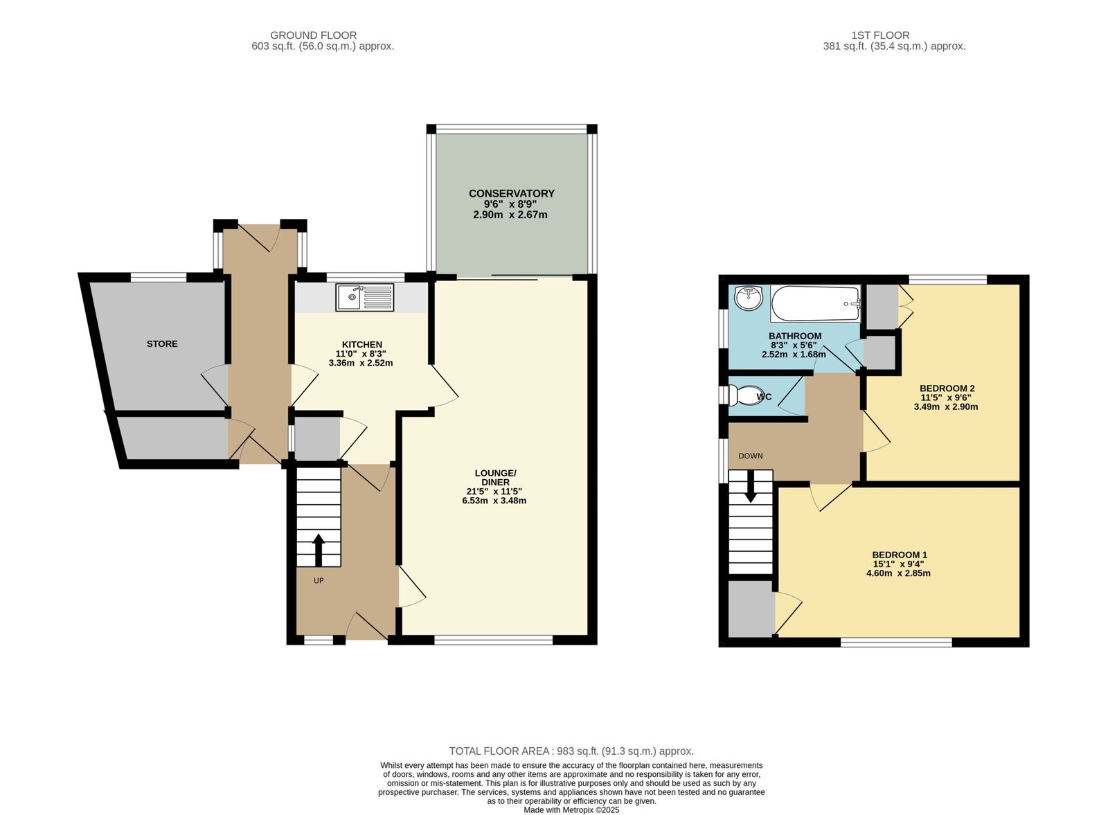 The accommodation briefly comprises a welcoming entrance hallway, an open plan lounge/diner perfect for family living, kitchen, storage area, and two conservatories offering additional versatile space. Upstairs are two well-proportioned double bedrooms and bathroom and separate W.C.