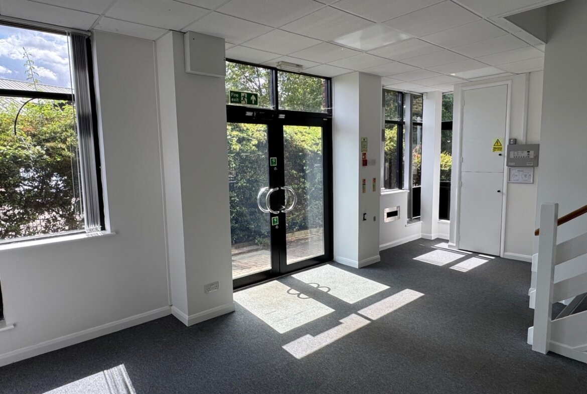 Unit 9 is a flexible unit that can be used for office or R&D purposes, the current owner has fitted out the Ground Floor as office space, it also has the benefit of front and rear access loading doors. Air conditioning serves both floors, and there is a reception area, WCs on both floors and a small kitchenette on the GF. Internal eaves height is 3M and there is excellent fibre connectivity on the business park. There are 10 demised parking spaces with the unit and further parking available on the park.