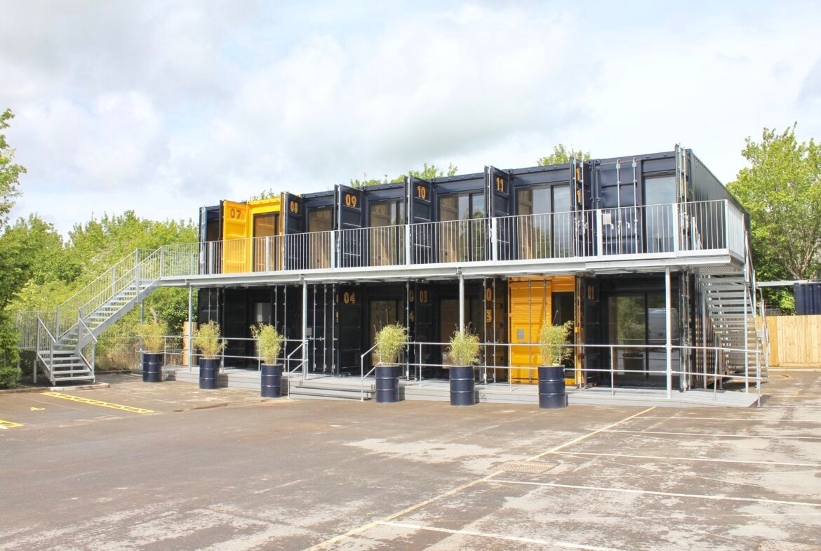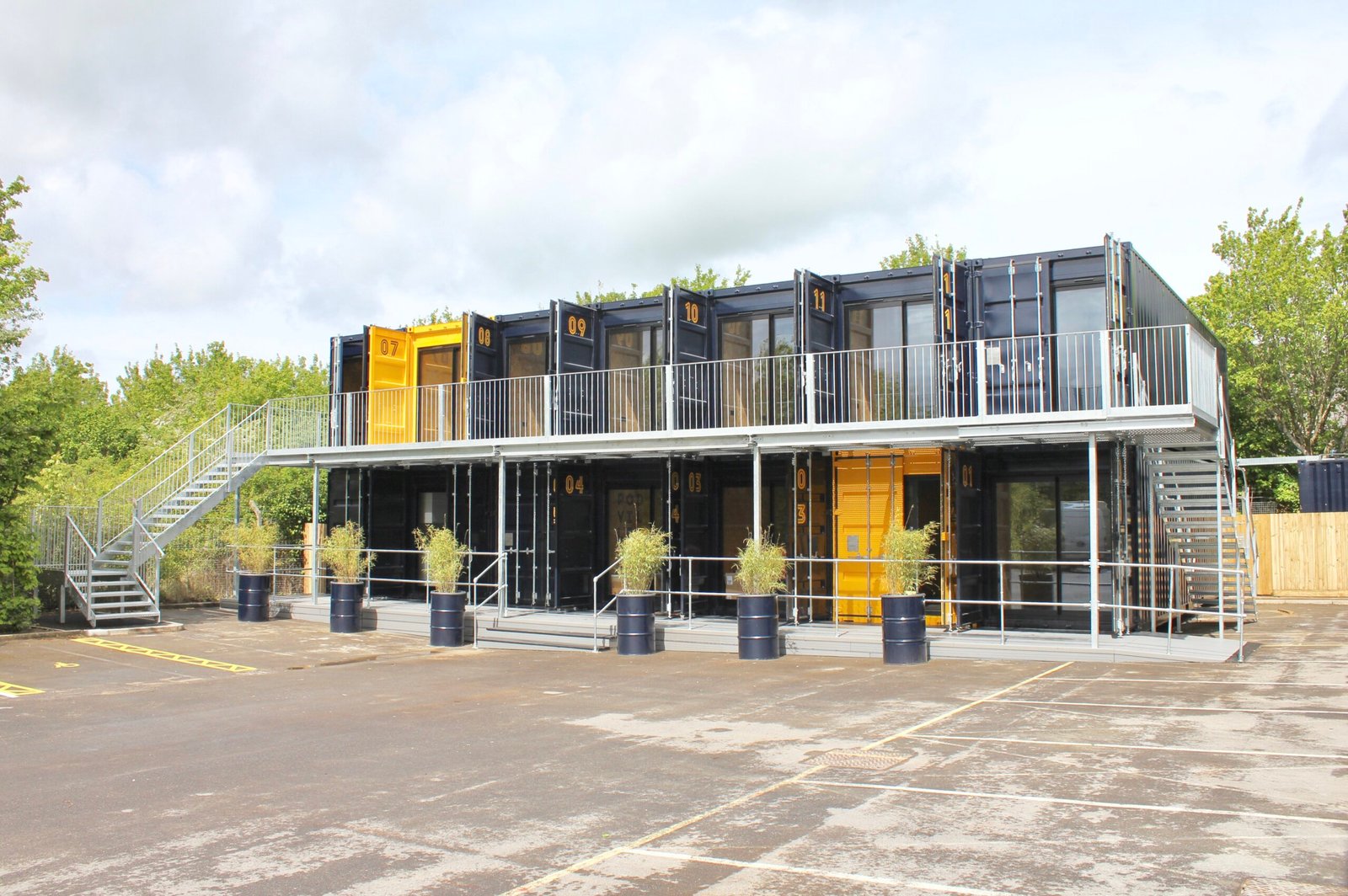 Podville offers 12 high-spec offices built from upcycled shipping containers, located in the diverse Aztec West business community.