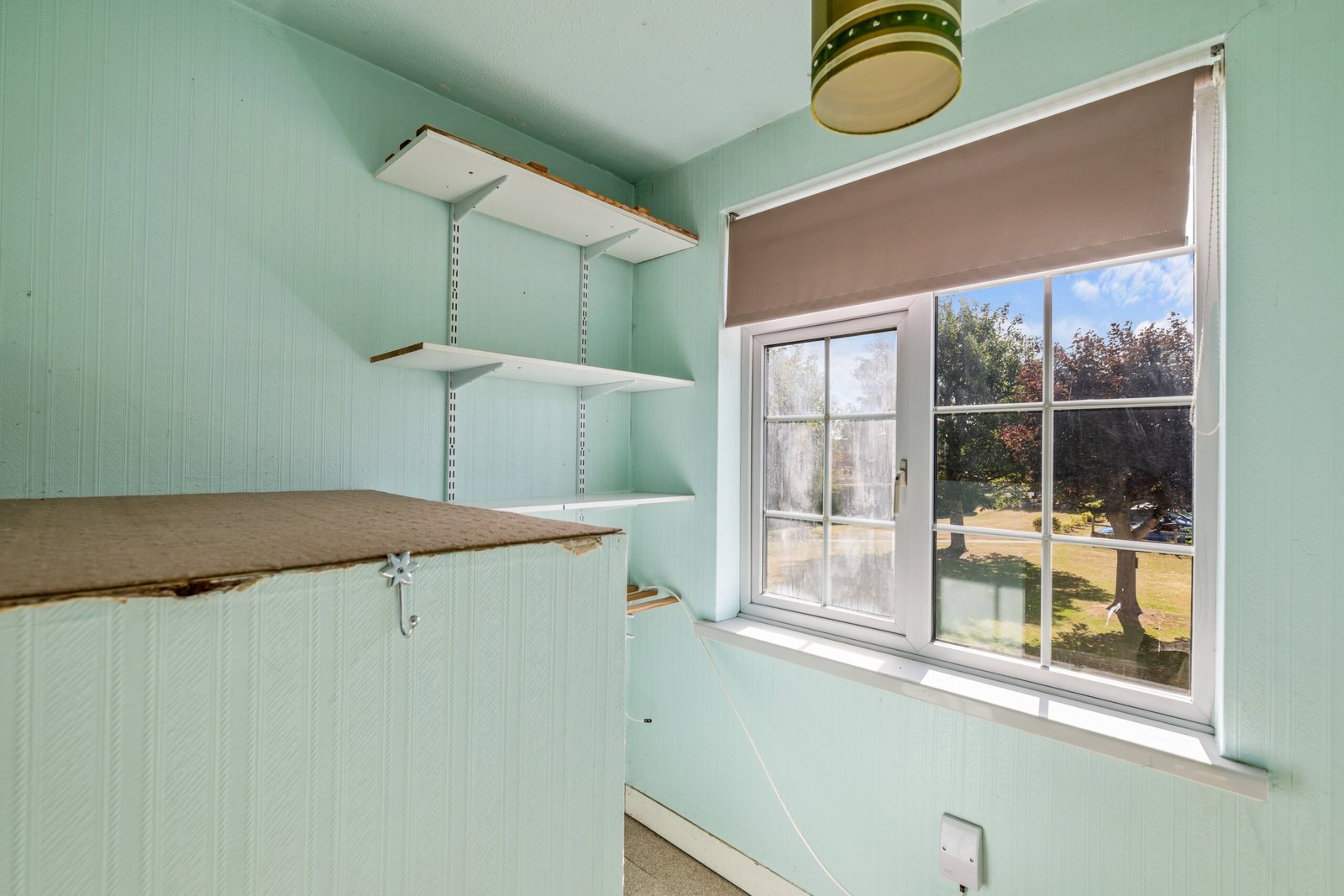 Double glazed window to front, loft access, shelving.